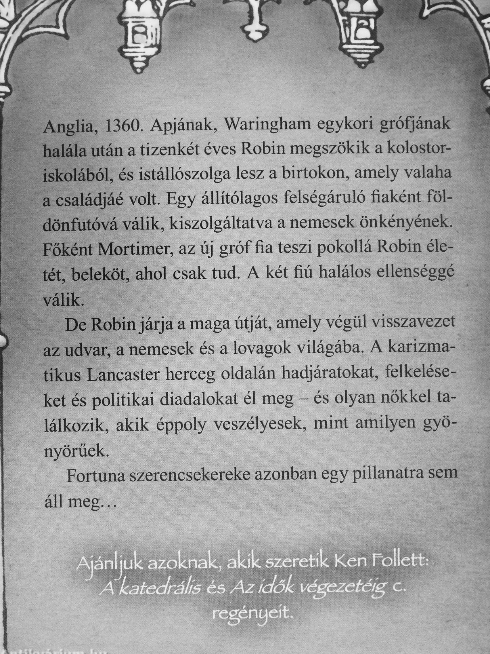 tét és a birtokot. Járja a maga útját, amely végül visszavezet az udvar, a nemesek és a lovagok világába. A karizmatikus Lancaster herceg oldalán hadjáratokat, felkeléseket és politikai diadalokat él meg - és olyan nőkkel találkozik, akik éppoly veszélyesek, mint amilyen gyönyörűek.