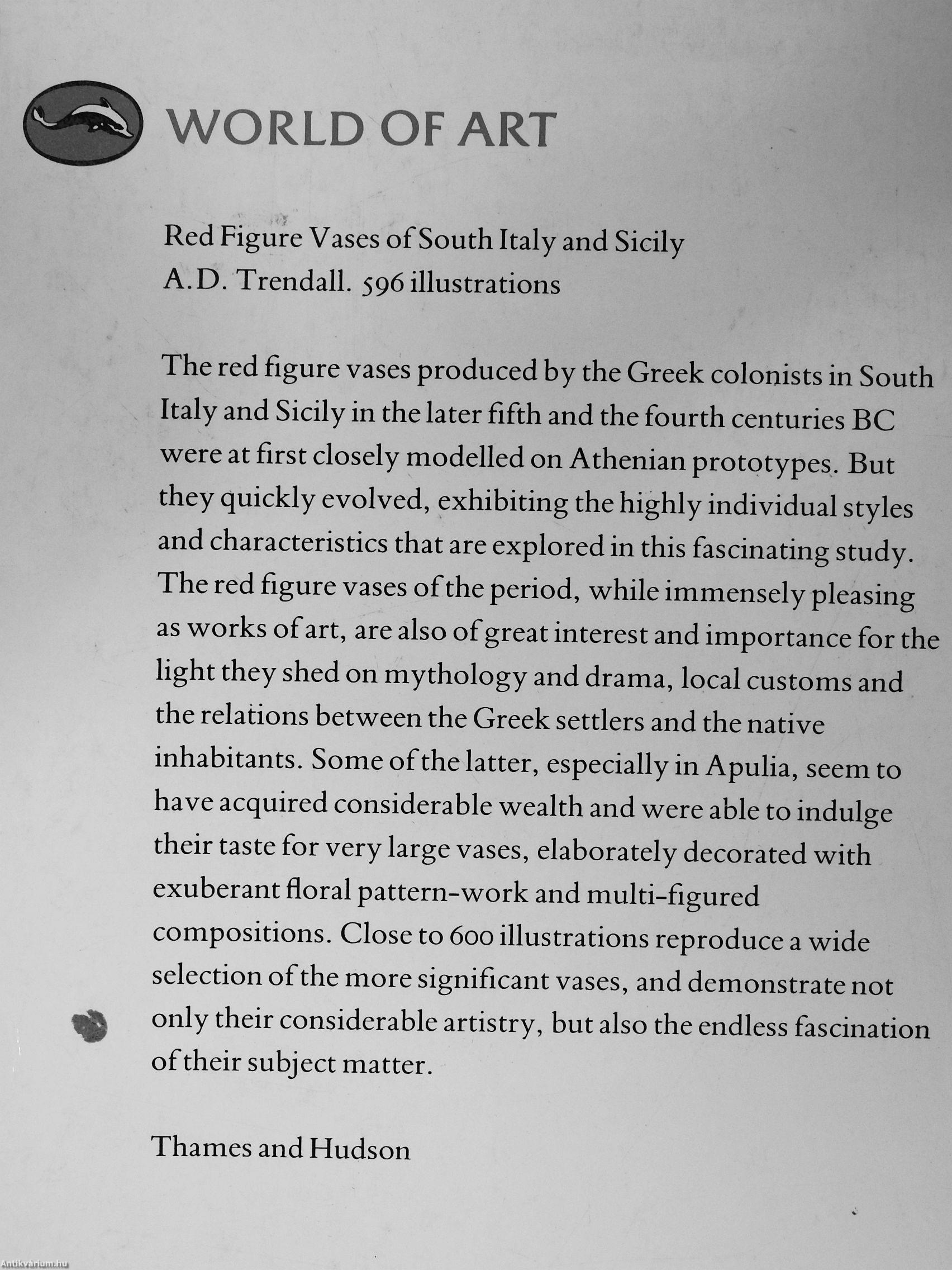 A. D. Trendall műveinek az Antikvarium.hu-n kapható vagy előjegyezhető listáját itt tekintheti meg: A. D. Trendall könyvek, művek