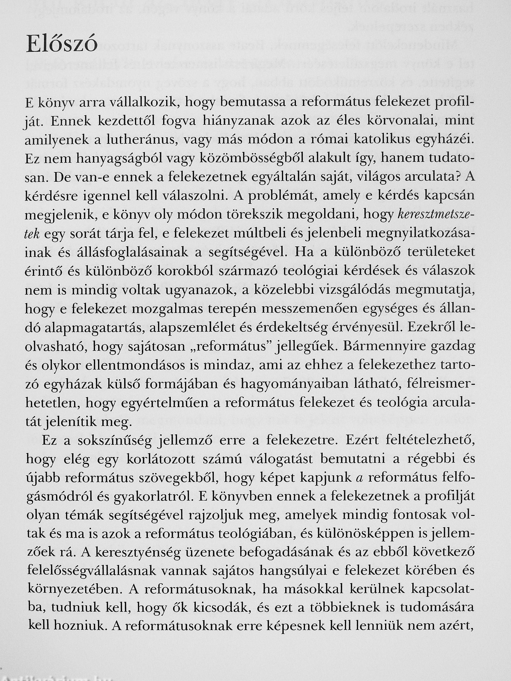 A keresztyén egyházak egyikét úgy hívják, hogy refornnátus. í\/lit jelent ez a fogalom? Ez a kérdés nem keyés református embert hoz zavarba. Részben joggal, hiszen sok részegyház szövetsége alkotja a református egyházat. A szerző arra a kérdésre keresi a választ, melyek a református egyházak jellemző vonásai. Ehhez régi és új hitvallásokat értékel Európa és az egész világ különböző részeiből, és egy sor olyan témával foglalkozik, amelyek ezekben az egyházakban fontosak voltak vagy ma is fontosak: Miért olyan fontos az Isten igéjének egysége? Mit jelent Isten egyetlen szövetsége? Hogyan kapcsolódik egymáshoz az evangélium és a törvény? Mi a keresztyén etika lényege? Mi iz, hogy „egyház", és milyen „tisztségek" vannak benne? A „képtilalom helyénvaló intéséről" is szó lesz majd, csakúgy, mint az egyház és a politika kapcsolatáról.