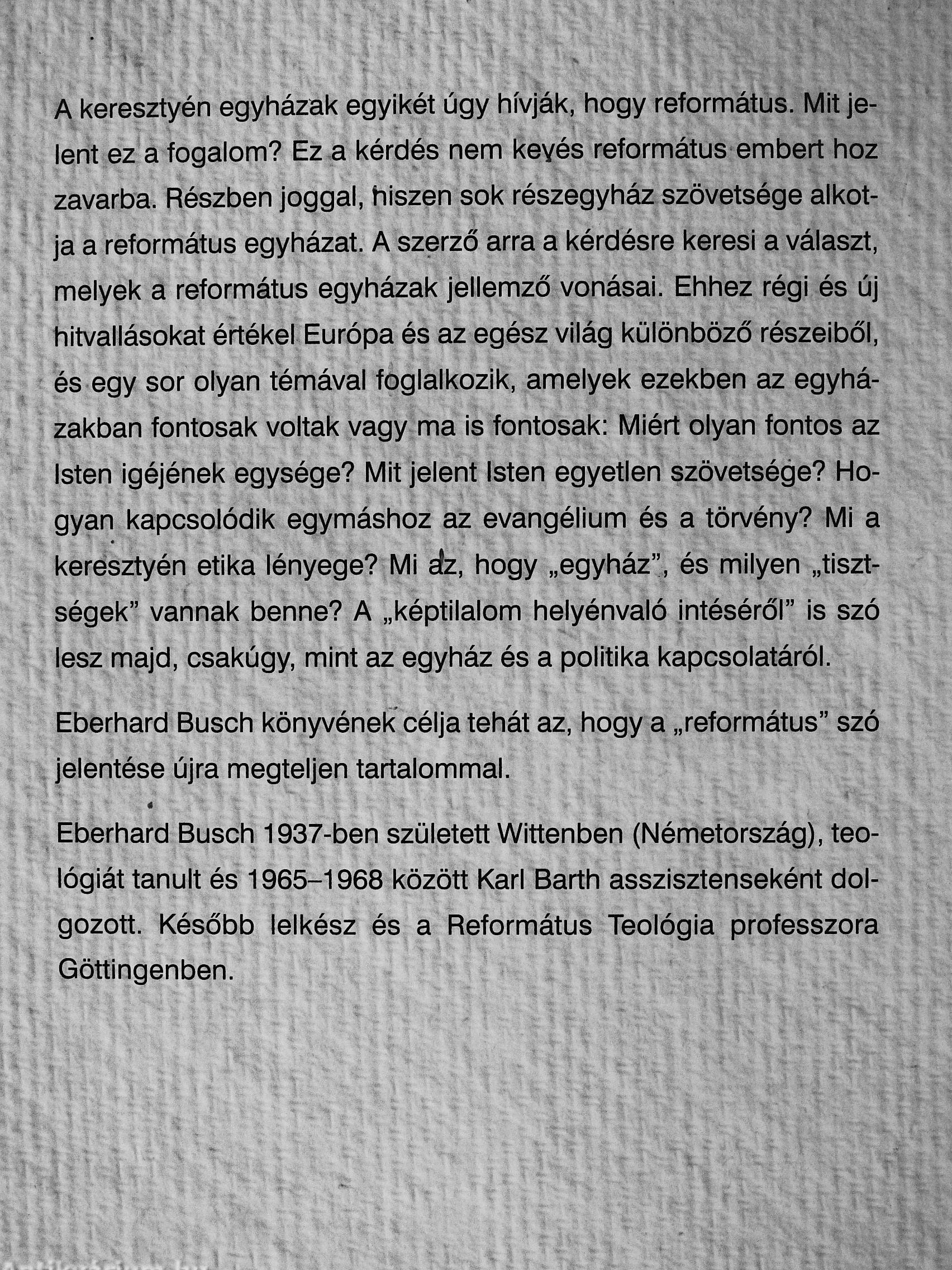 Eberhard Busch könyvének célja tehát az, hogy a „református" szó