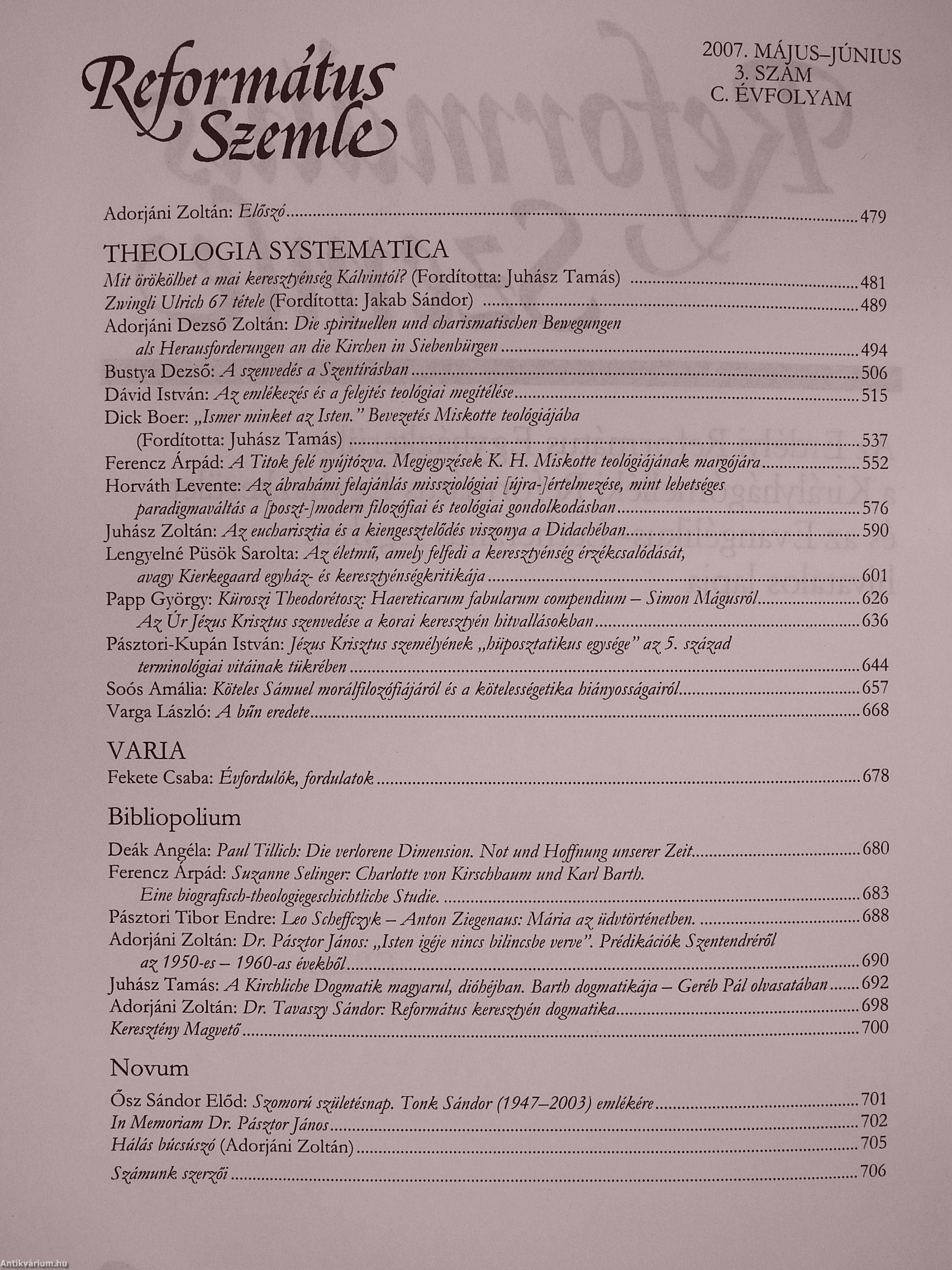 | Sorozatcím: | Református Szemle |