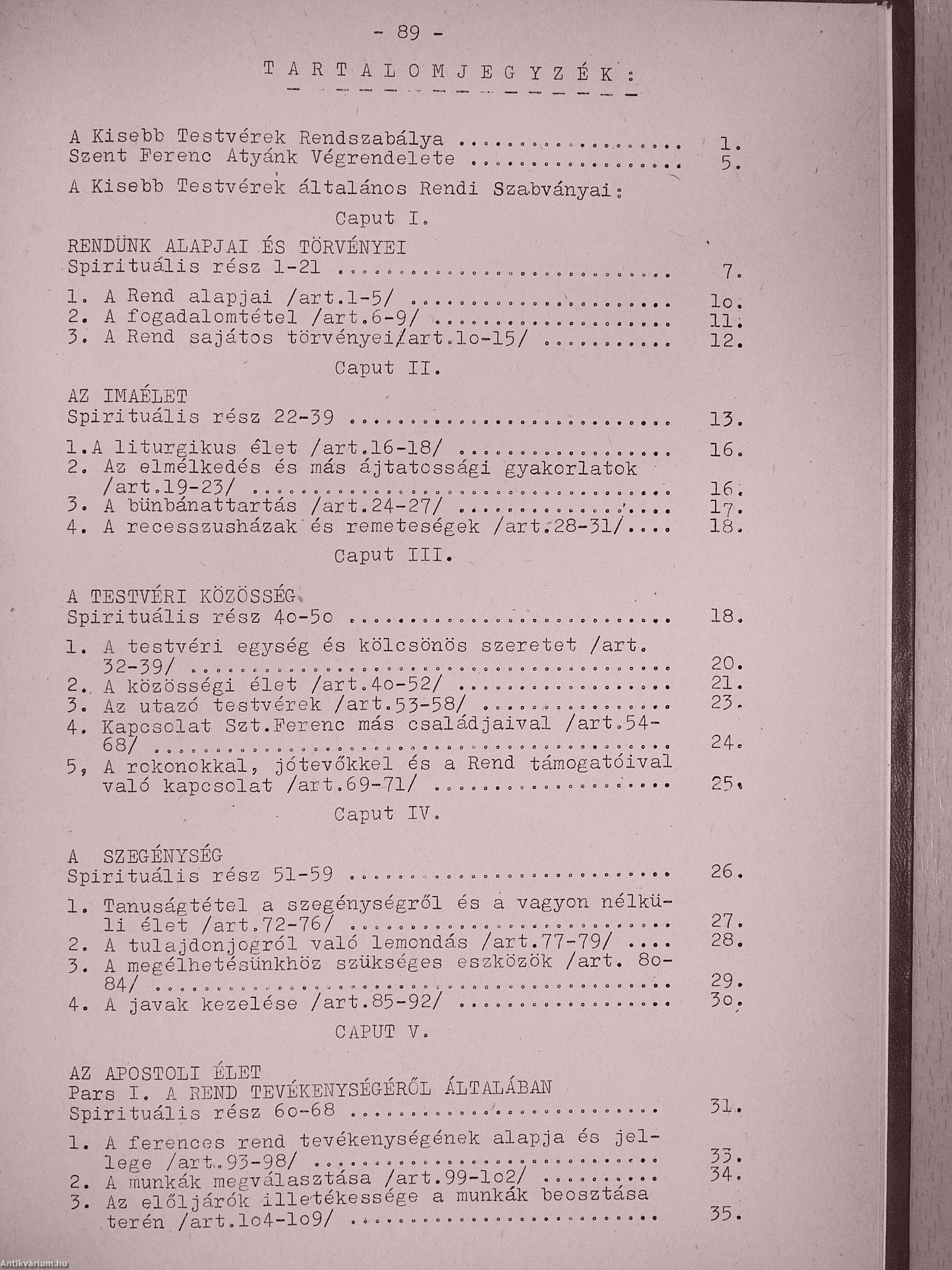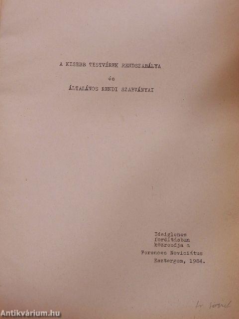 A kisebb testvérek rendszabálya és általános rendi szabványai