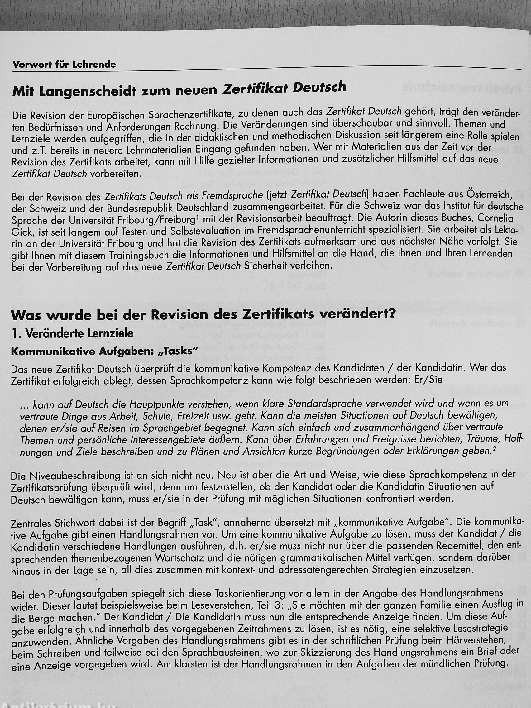 Dieses Trainingsprogramm wurde zur Vorbereitung auf die Prüfung „Zertifilat Deutsch" entwickelt. Es kann ergänzend zu jedem Grundstufenlehrwerk eingesetzt werden. Es richtet sich an alle, die sich im Kursunterricht oder selbstständig auf diese Prüfung vorbereiten möchten.