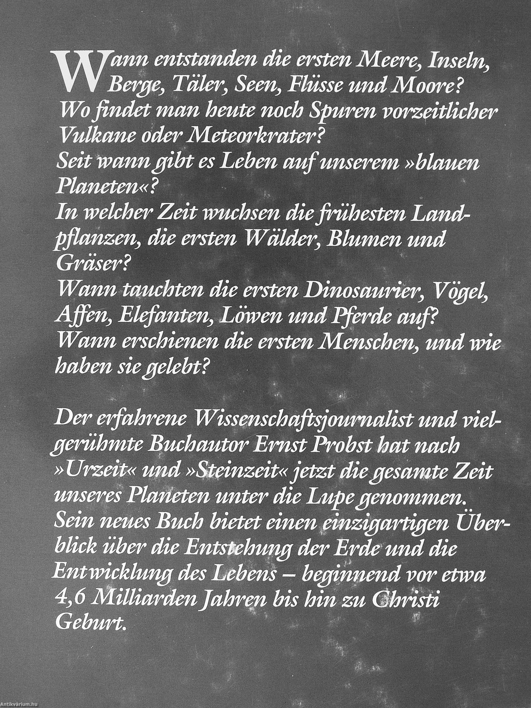 Der erfahrene Wissenschaftsjoumalist und viel-ßerühmte Biuchautar Emst Probst hat nach »Urzeit« und »S^^inzeit« jetzt die gesamte Zeit unseres Plafieten unter die Lupe genommen. Sein neues Bwh bietet einen einzigartigen Uberblick über die Entstehung der Erde und die Entwicklung des Lebens - beginnend vor etwa 4,6 Milliarden Jahren bis hin zu dhnsd Geburt.