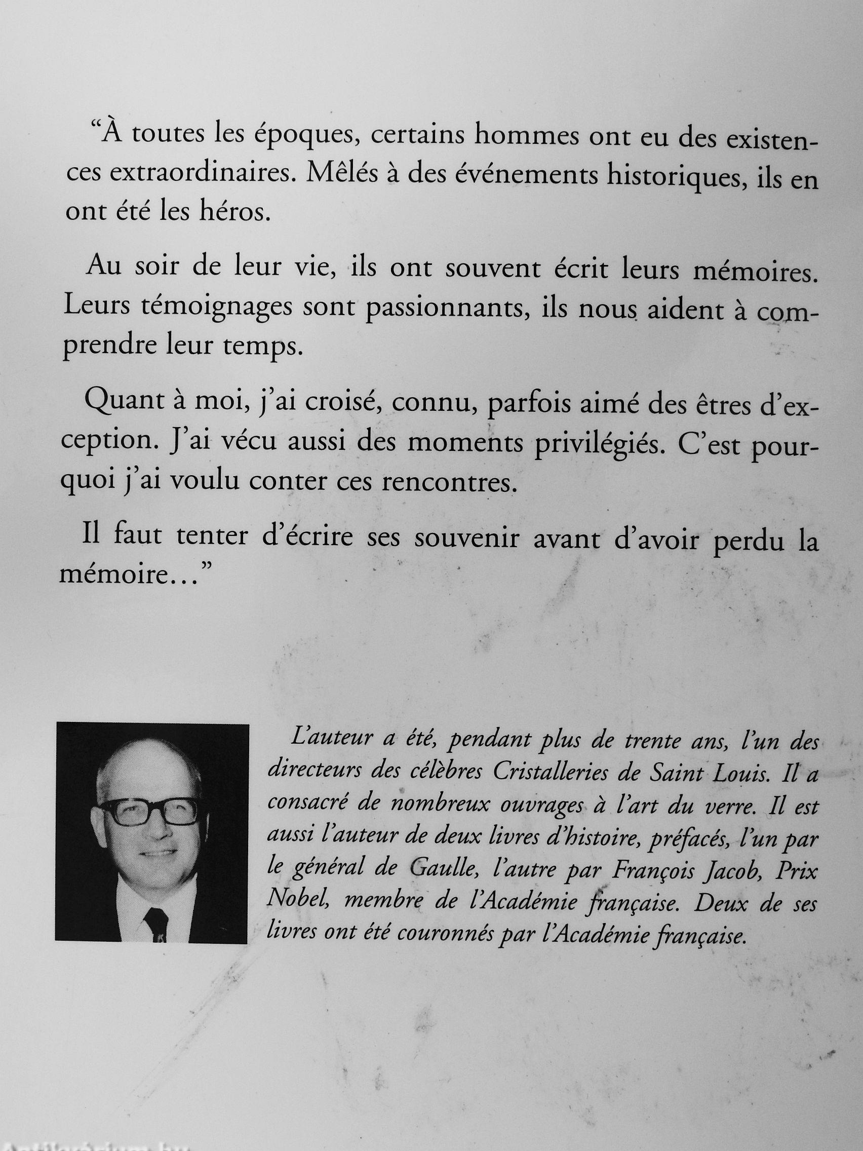 L'auteur a été, pendant plus de trente ans, l'un des directeurs des célebres Cristalleries de Saint Louis. Il a consacré de nombreux ouvrages a l'art du verre. Il est aussi l'auteur de deux livres d'histoire, préfacés, l'un par le général de Gaulle, l'autre par François Jacob, Prix Nobel, membre de l'Académie française. Deux de ses livres ont été couronnés par l'Académie française.