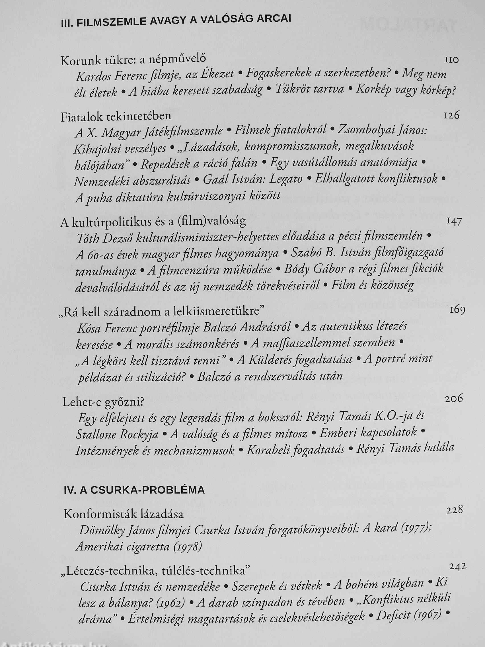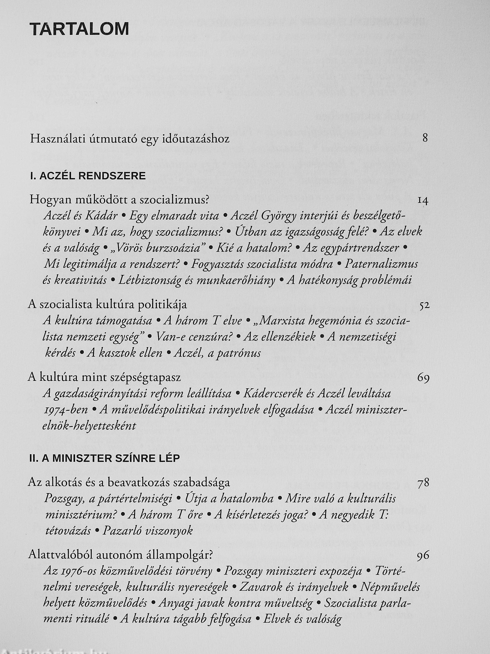 De ennek a könyvnek nem a kultúrpolitikusok az igazi főszereplői, hanem azok a művészek, sportolók, mindennapi emberek, akik a maguk módján mind azt kutatták, miképp lehet létezni a rendszerben. A belenyugvás és az alkalmazkodás mellett a lázadás is számtalan arcát mutatja. A cinizmus vagy a konformizmus lázadása mellett megjelent a minőség lázadása is. Egy teljességgel átpolitizált, ezért apolitikusságra szoktató korban talán ez a legérvényesebb magatartás, filmeket, könyveket, színházi előadásokat felidézve ez tűnik a legmaradandóbbnak a korból. Ezt találjuk Székely Gábor, Kósa Ferenc, Ascher Tamás, Gaál István, Simonffy András, Fodor Tamás és mások munkáiban.
