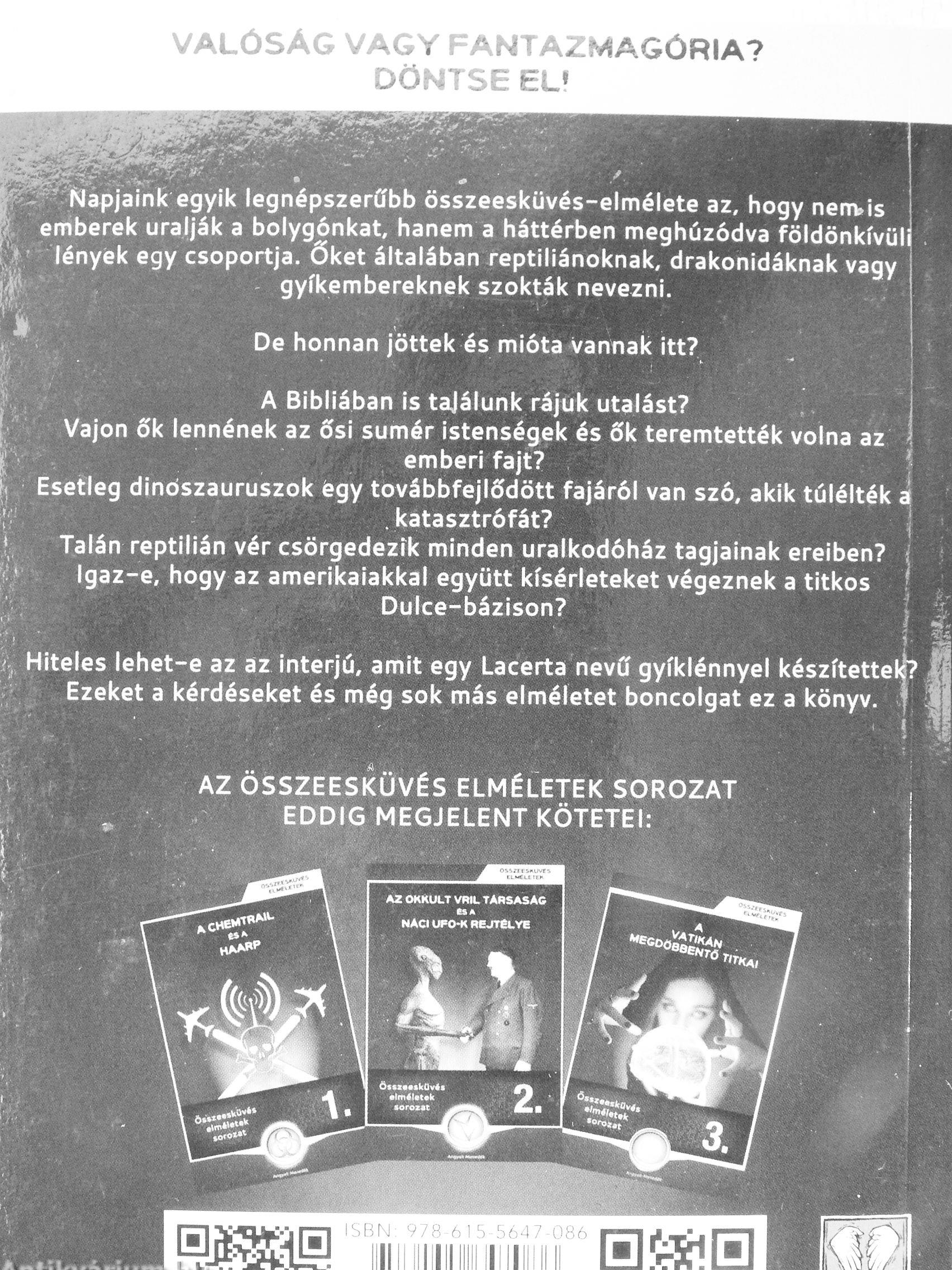 - ' Mapjaink egyik legnépszerűbb összeesküvés-elmélete az, hogy nenvis ^ \ emberek uralják a bolygónkat hanem a háttérben meghúzódva földönkívüli f j lények egy csoportja. Őket általában reptiliánoknak« drakonidáknak vagy