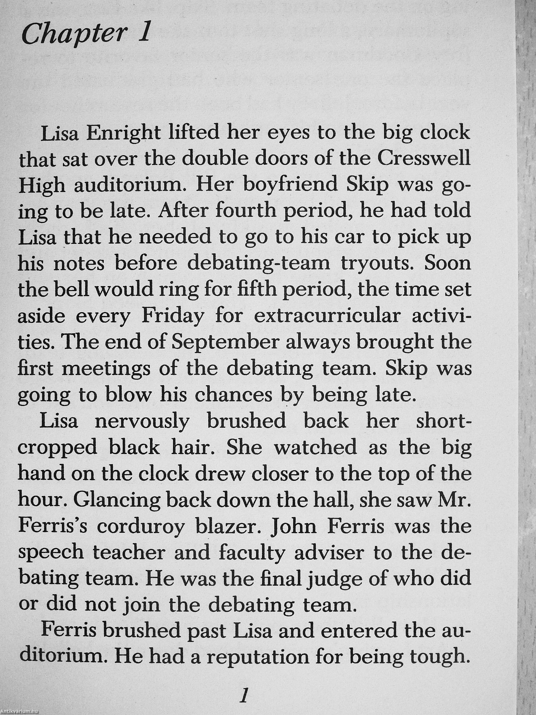 The debate team didn't mean to kill Lisa Enright's boyfriend. But when no one comes after them, they decide to hide their crime—imtil Lisa finds out.