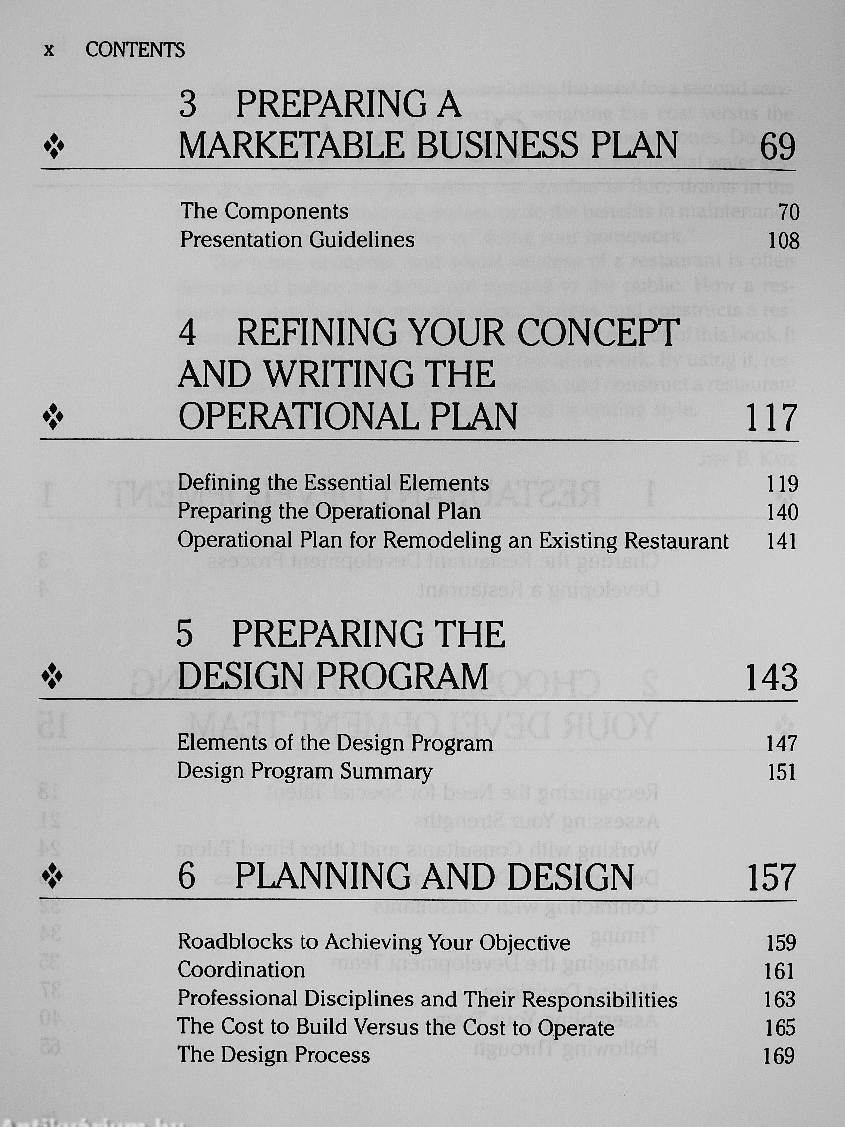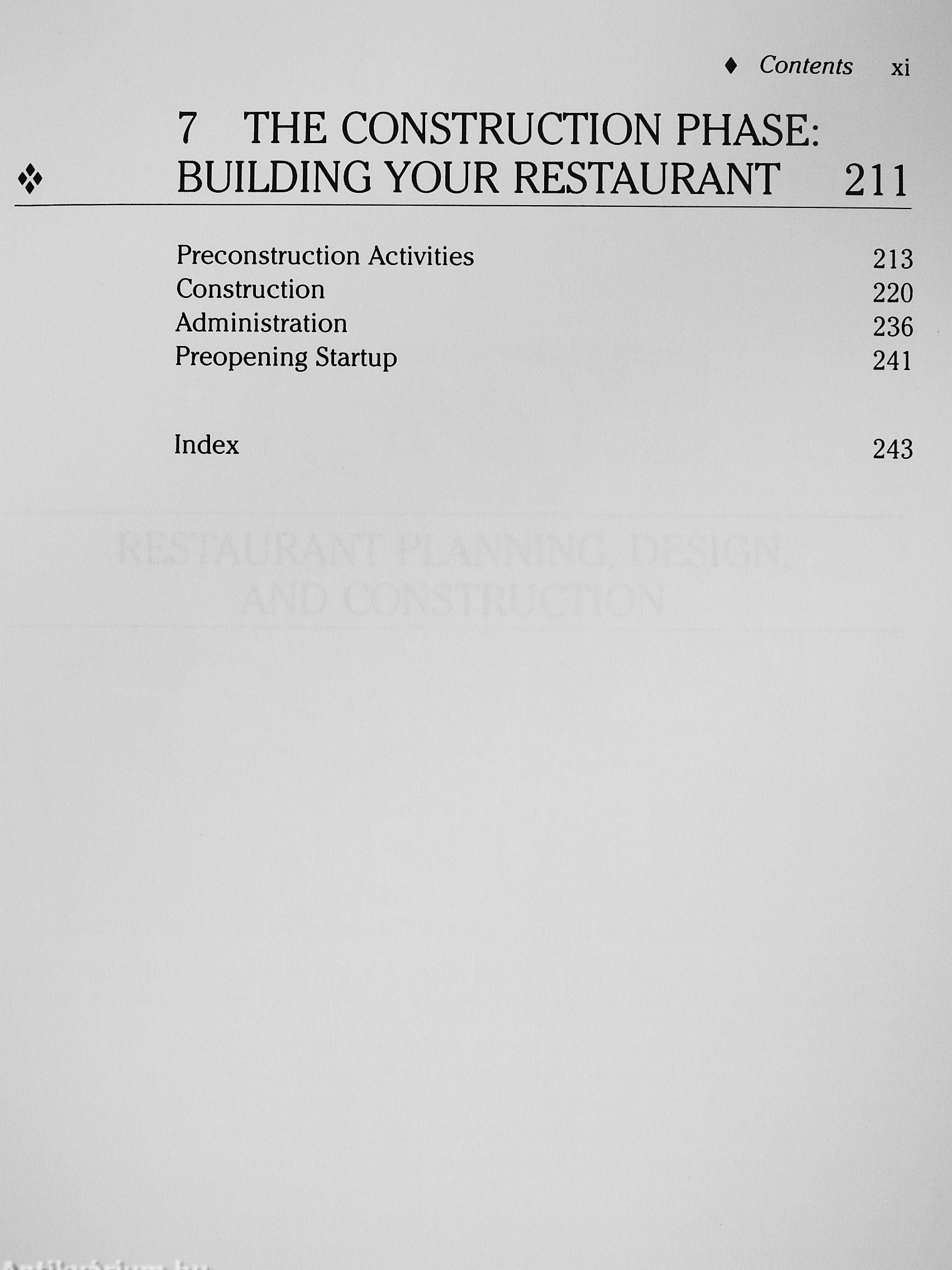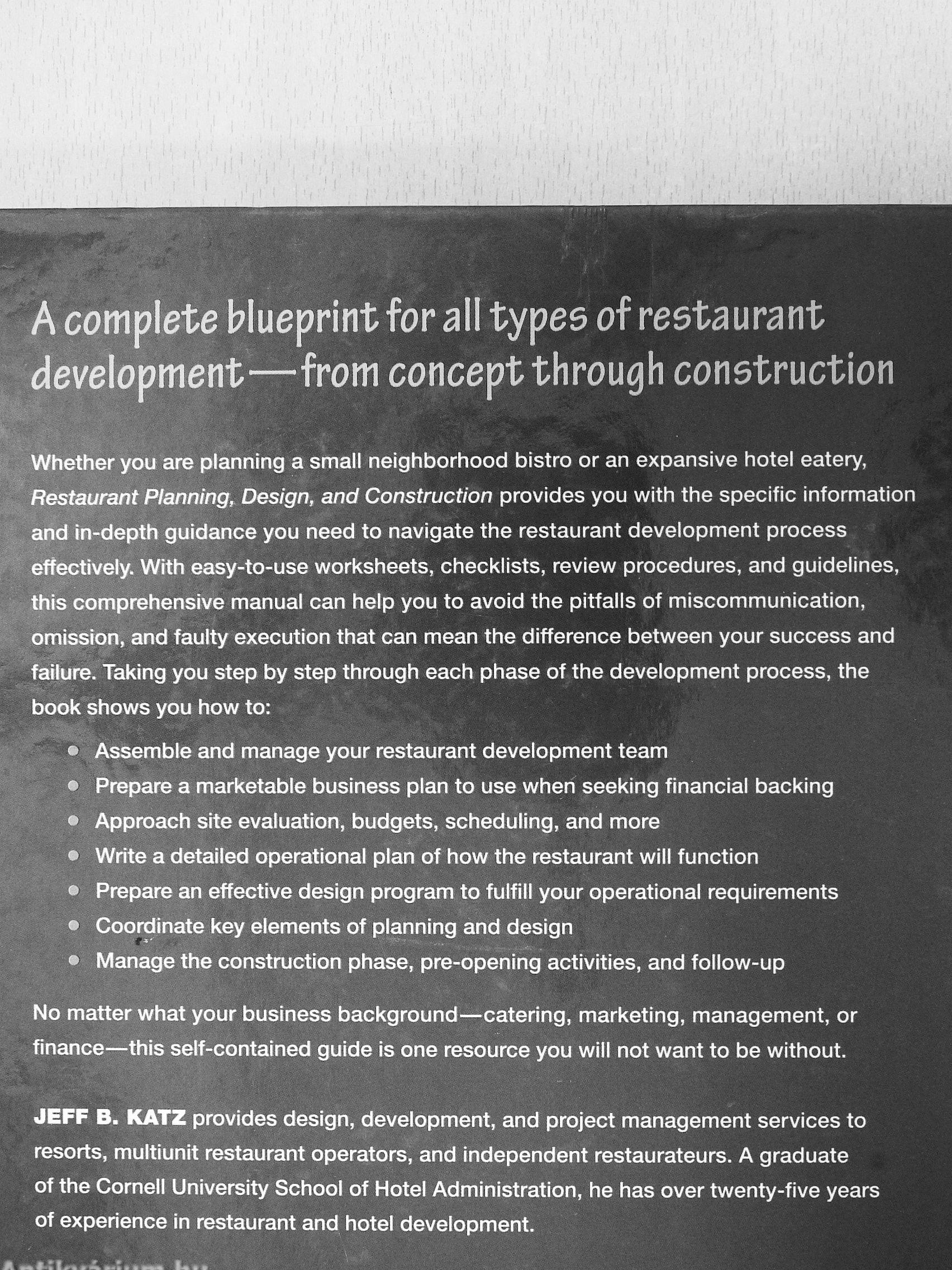 Whether you are planning a small neighborhood bistro or an expansive hotel eatery, Restaurant Planning, Design, and Construction provides you with the specific information and in-depth guidance you need to navigate the restaurant development process effectively. With easy-to-use worksheets, checklists, review procedures, and guidelines, this comprehensive manual can help you to avoid the pitfalls of miscommunication, omission, and faulty execution that can mean the difference between your success and failure. Taking you step by step through each phase of the development process, the book shows you how to: