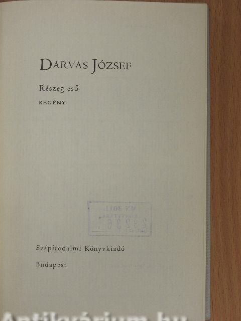 Leginkább talán a film technikájához hasonlítható a regény szerkezete: a jelenben futó képsort minduntalan "bevágások" szakítják meg - képek, jelenetek a múltból - izzó, sűrű, megrendítő jelenetek: kell-e ennél több? Pedig a Részeg eső ennél is többet ad: a történelem, tegnapunk forró pátoszát, eleven áramát - és azok számára, akik kortársként élték át ezeket a sorsfordító, jövőt teremtő, súlyos és szép éveket -, az emlékezés, a ráismerés örömét is.