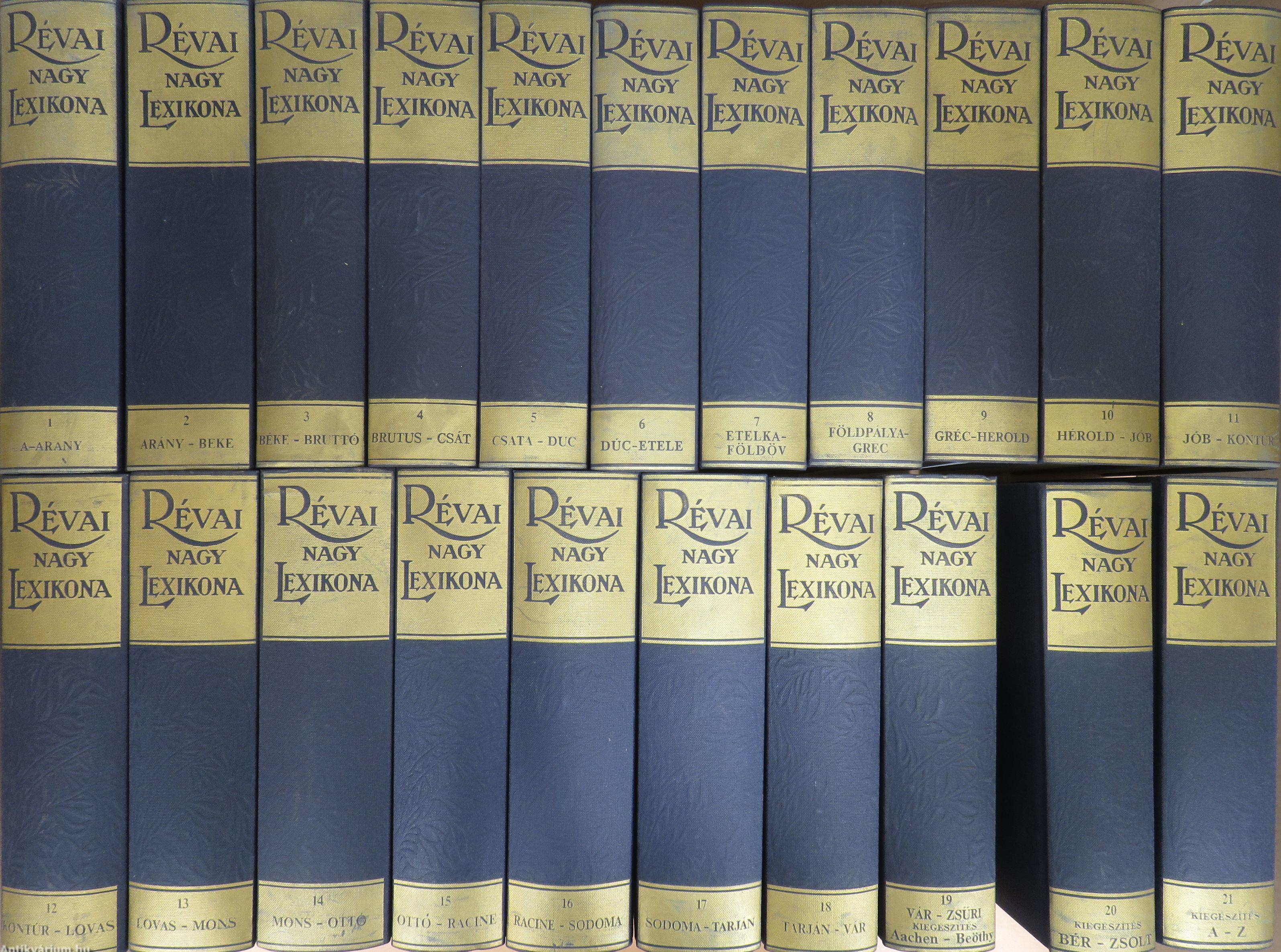 | Megjegyzés: | Teljes sorozat. A lexikonok fekete-fehér és színes fotókat, ábrákat, illusztrációkat és kihajtható mellékleteket tartalmaznak. A Révai Testvérek Irodalmi Intézet Részvénytársaság kiadásának hasonmás kiadása. Az 1-2. kötet 1989-ben, a 3-5. kötet 1990-ben, a 6-9. kötet 1991-ben, a 10-11. kötet 1992-ben, a 12-14. kötet 1993-ban, a 15-17. kötet 1994-ben, a 18-20. kötet 1995-ben, a 21. kötet 1996-ban jelent meg. |
