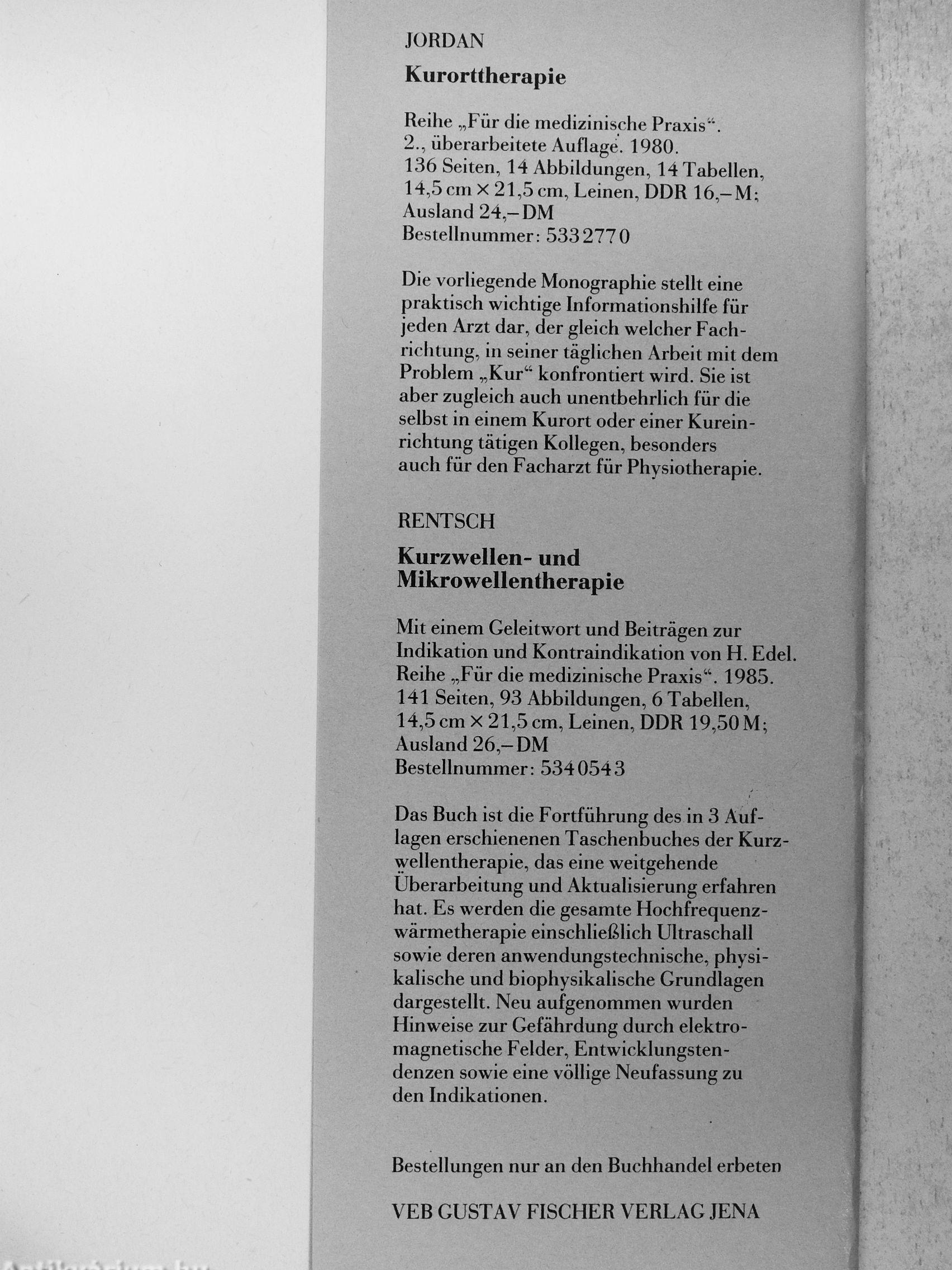 Reilie „Für die medizinische Praxis". 2., überarbeitete Auflage. 1980. 136 Seiten, 14 Abbildungen, 14Tabellen, 14,,5 cm x 21,5 cm, Leinen, DDR 16,-M; Ausland...