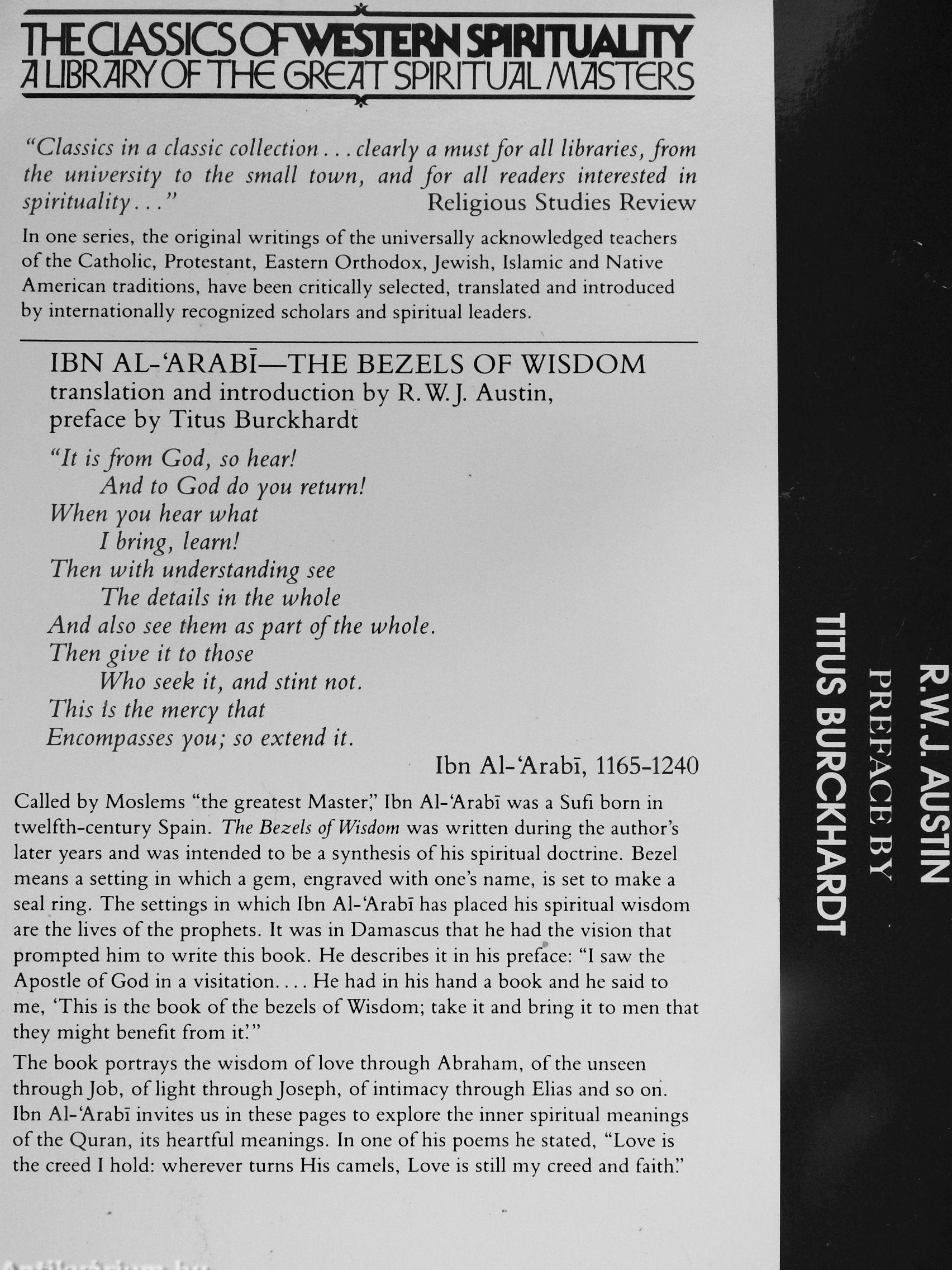 IBN AL-'ARABI—THE BEZELS OF WISDOM translation and introduction by R.W.J. Austin, preface by Titus Burckhardt