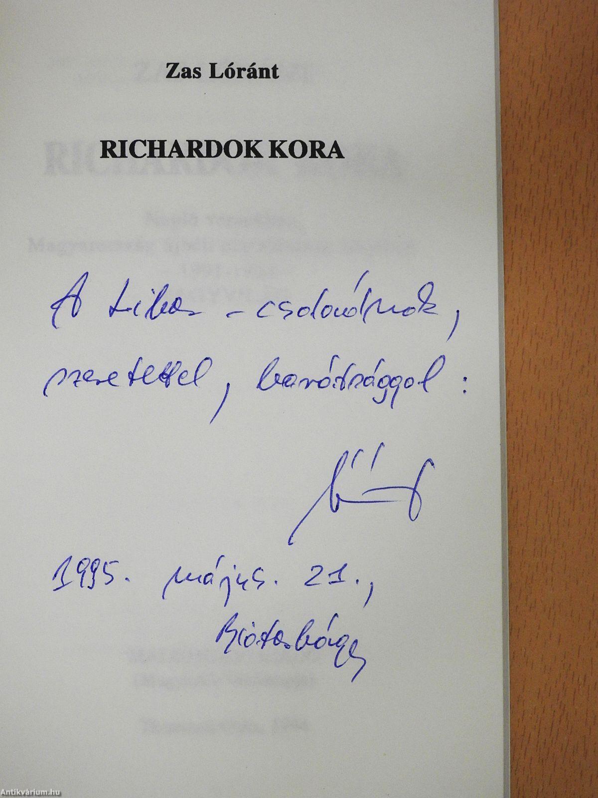 Az itt közölt versek 1991-től sorakozó osztaga a Richard-i lovagok ellen vonul, azt is bizonyítva, hogy nem lehet mindenkit porondra-fektetni. És végül, figyelmeztetés az olvasóhoz Politikai lírát tart a kezében, a költő előző kötetének, "A nemzeted nevében" folytatását, a Petőfi-i "akasszátok fel a királyokat" és az Arany-i "welszi bárdok" szellemében. És ha útálja a politikát, ne olvasson tovább! Akkor viszont a Richardok-nak ad igazat...