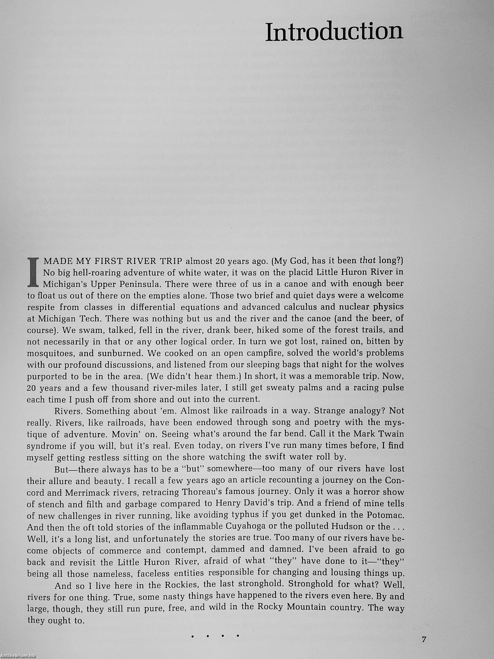 rolled into one—was drawn to the Rocky Mountain region by the plentiful beaver inhabiting the rivers. The Westward Migration found the rivers to be both barriers and paths across the continent. Gold seekers scoured the rivers and mountains for instant wealth. And remarkable individuals such as Lewis and Clark and John Wesley Powell risked danger and hardship to explore and map the wilds through which these rivers ran.