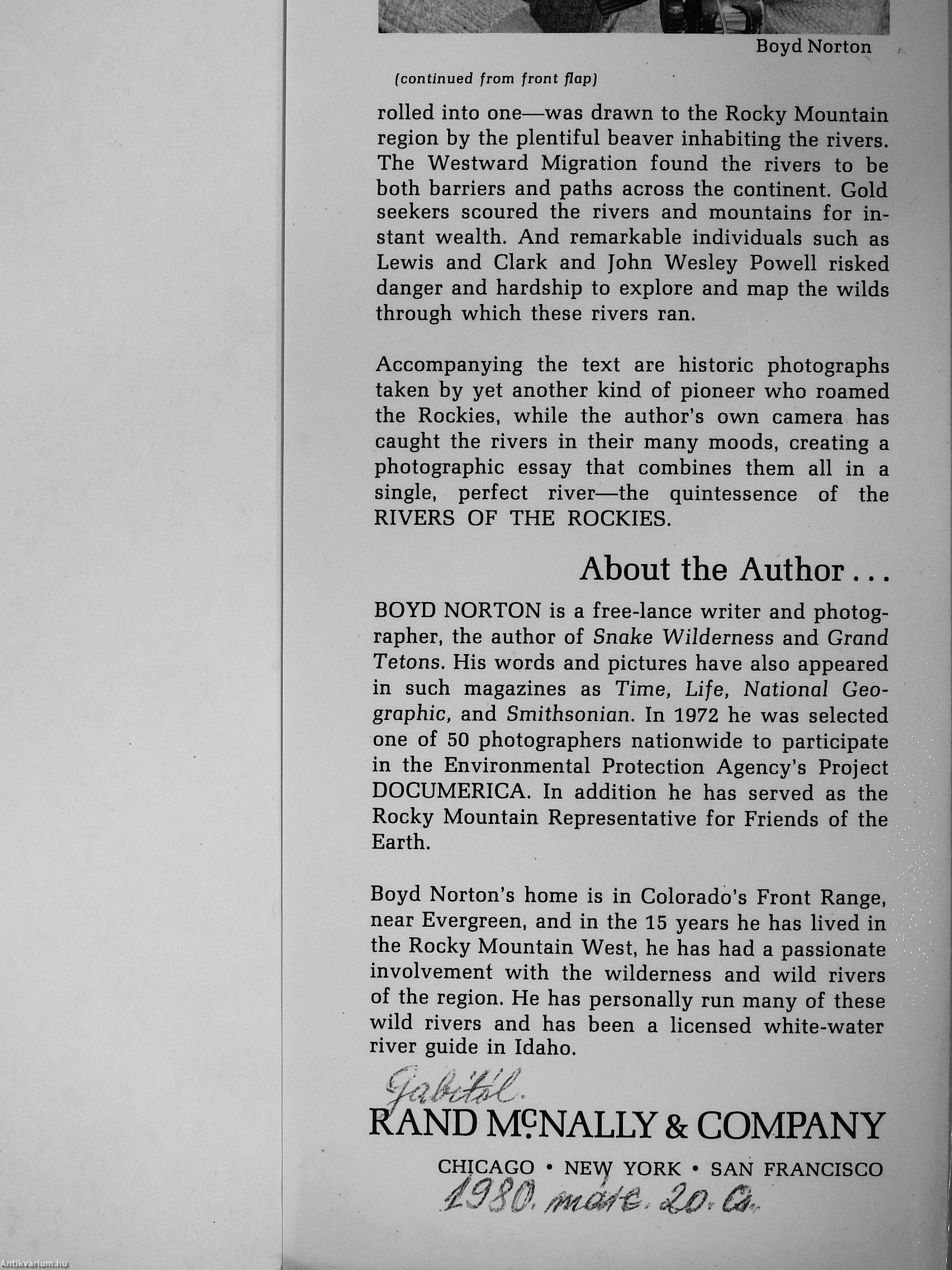 Boyd Norton's home is in Colorado's Front Range, near Evergreen, and in the 15 years he has lived in the Rocky Mountain West, he has had a passionate involvement with the wilderness and wild rivers of the region. He has personally run many of these wild rivers and has been a licensed white-water river guide in Idaho.
