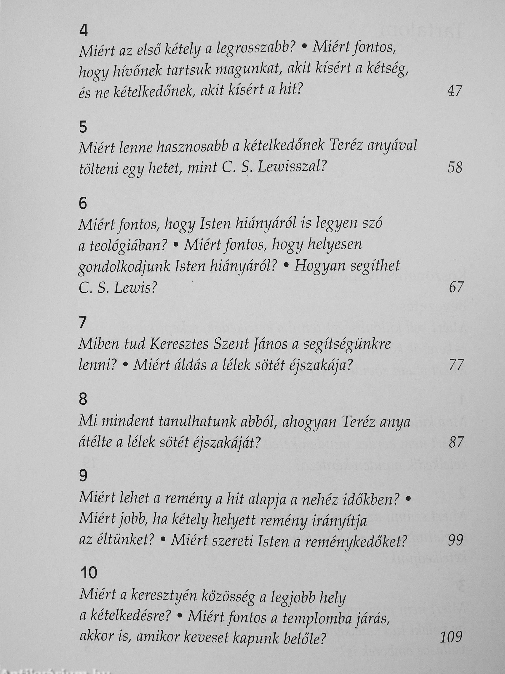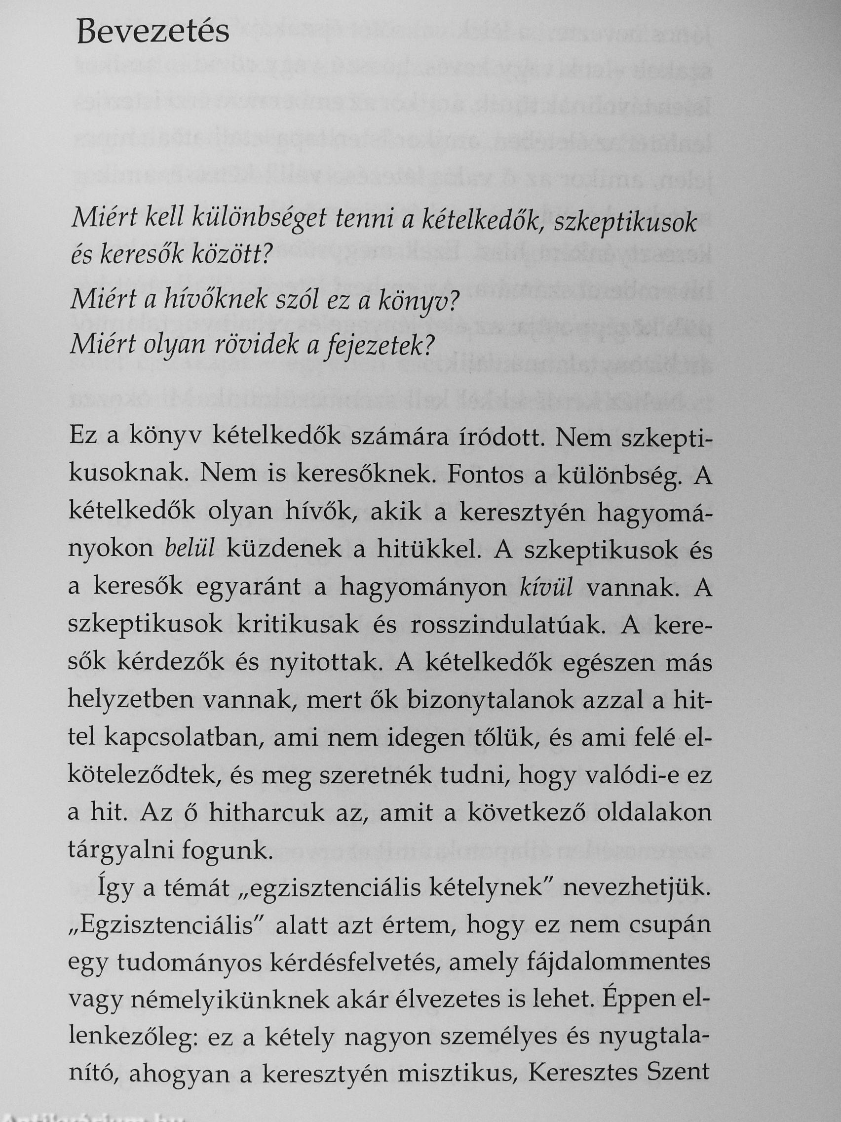 „Vannak időszakok - sok vagy kevés, hosz-szú vagy rövid -, amikor Isten távolinak tűnik, amikor az ember nem érzi Isten jelenlétét az életében, és minden komolyan megkérdőjeleződik, amit keresztyénként hisz. Ezek megpróbáltató időszakok a hit emberei számára."