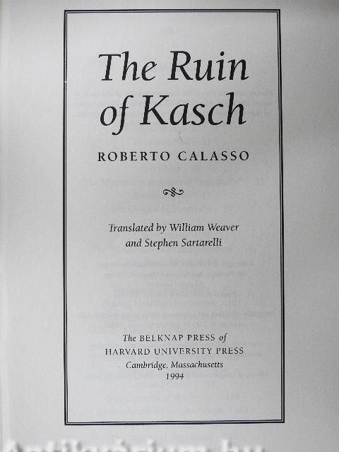 "With The Ruin of Kasch Roberto Calasso has perhaps inaugurated a new literary category: the hybrid book, uniting history and novel, tale and aphorism, fable and reflection One doesn't know what to admire more: the emdition that laughs at erudition, the supple and imperious thinking that connects disparate elements with a single stroke, the masterful way the subject engenders its own form A very great book."