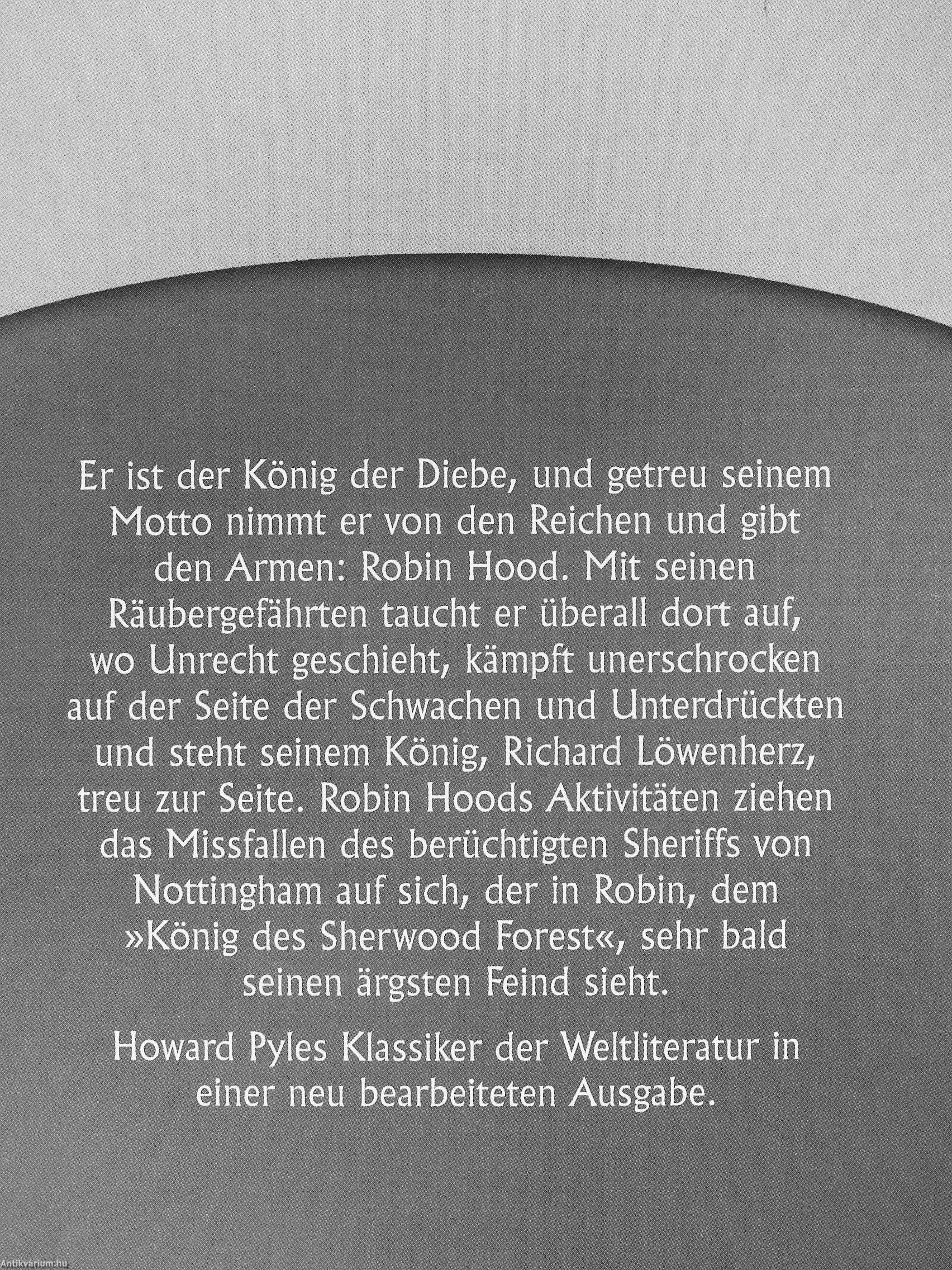 den Armen: Robin Hood. Mit seinen Räubergefährten taucht er überall dort auf, wo Unrecht geschieht, kämpft unerschrocken auf der Seite der Schwachen und Unterdrückten und steht seinem König, Richard Löwenherz, treu zur Seite. Robin Hoods Aktivitäten ziehen das Missfallen des berüchtigten Sheriffs von Nottingham auf sich, der in Robin, dem »König des Sherwood Forest«, sehr bald seinen ärgsten Feind sieht.