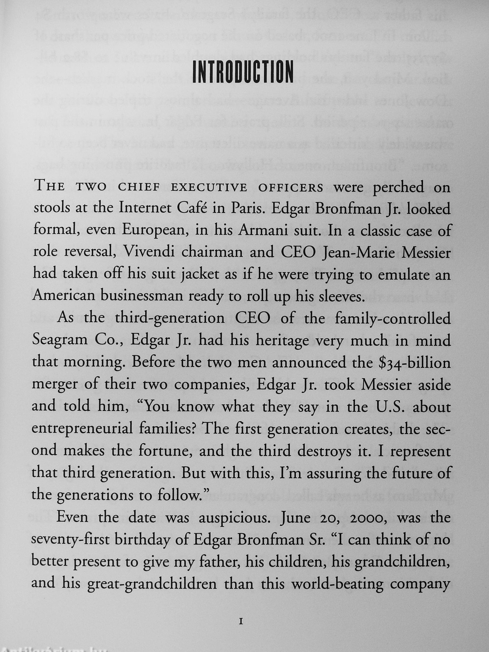 : i "A nuahced portrait of Edgar ,. Bronfman Jr. as a sensitive but > unexceptional person haunted by •' a responsibility to his family he was unable to uphold."