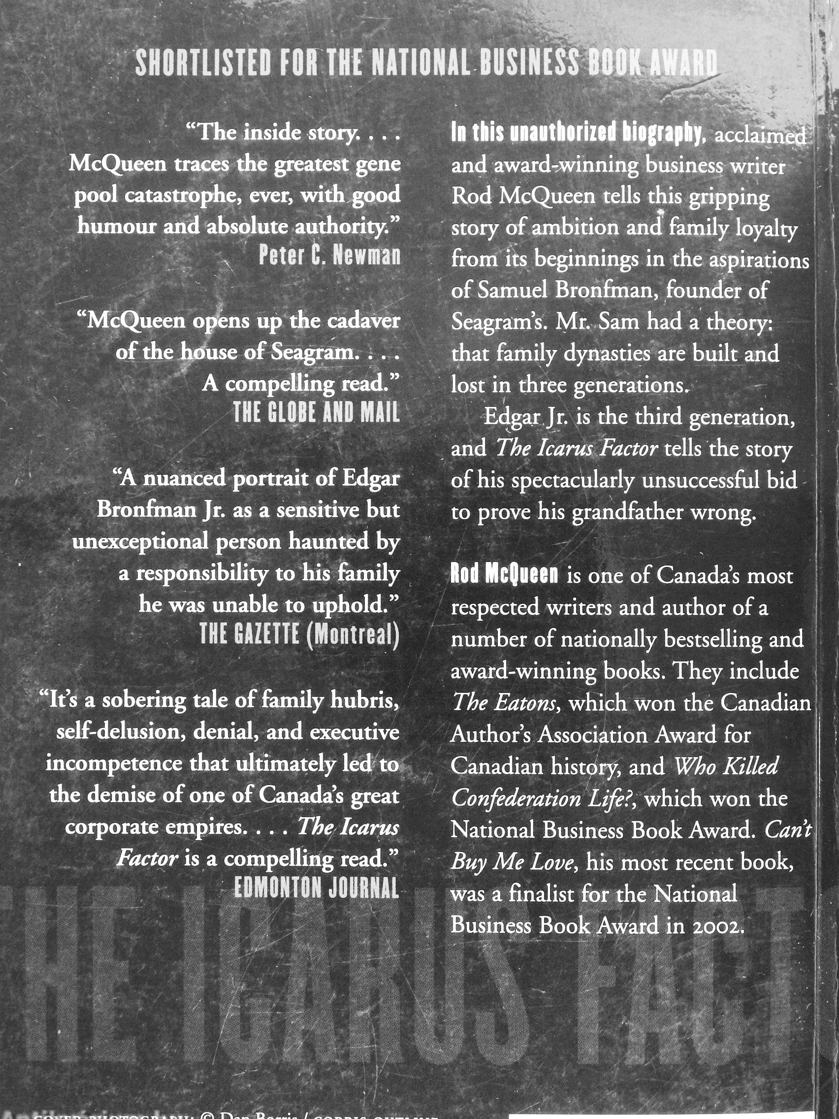 "It's a sobering tale of family hubris, self-delusion, denial, and executive incompetence that ultimately led' to^^ the demise of one of Canada's great ^ corporate empires . The Icarus^ Factor is a compelling read."