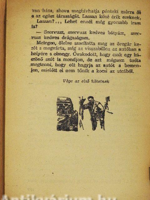- Édesapám nyulat küldött... Nagyon panaszkodik szegény, sokat kell szenvedni most a népekkel a háború óta, egész megváltozott a világ és ő már öregedik... Szerette volna, ha Pista átvette volna a birtokot... Nahát, Pistával most... Fiam, úgy udvarolnak neki... mindenki a protekcióját lesi... Még alszik, mert az este reggelig tartott ez a városi bankett...