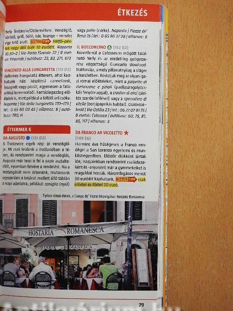 | Megjegyzés: | Színes fotókkal, 10 oldalas várostérképpel, Róma gyorsvasút- és metróhálózat térképével. |