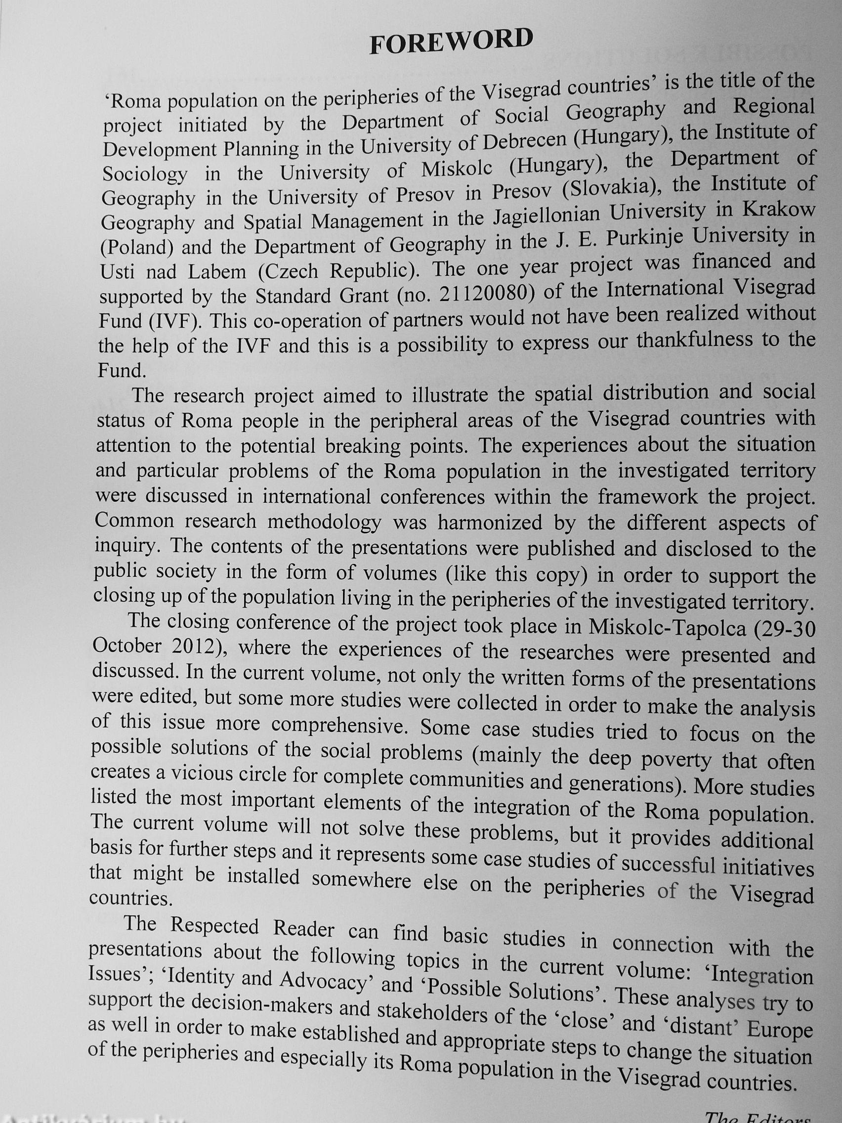 Roma Population on the Peripheries of the Visegrad Countries Roma Population on the Peripheries of the Visegrad Countries Roma Population on the Peripheries of the Visegrad Countries Roma Population on the Peripheries of the Visegrad Countries