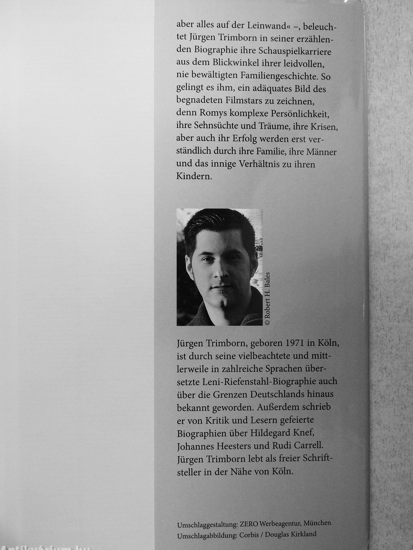 aber alles auf der Leinwand« beleuchtet Jürgen Trimborn in seiner erzählenden Biographie ihre Schauspielkarriere aus dem Blickwinkel ihrer leidvollen, nie bewältigten Familiengeschichte. So gelingt es ihm, ein adäquates Bild des begnadeten Filmstars zu zeichnen, denn Romys komplexe Persönlichkeit, ihre Sehnsüchte und Träume, ihre Krisen, aber auch ihr Erfolg werden erst verständlich durch ihre Familie, ihre Männer und das innige Verhältnis zu ihren Kindern.
