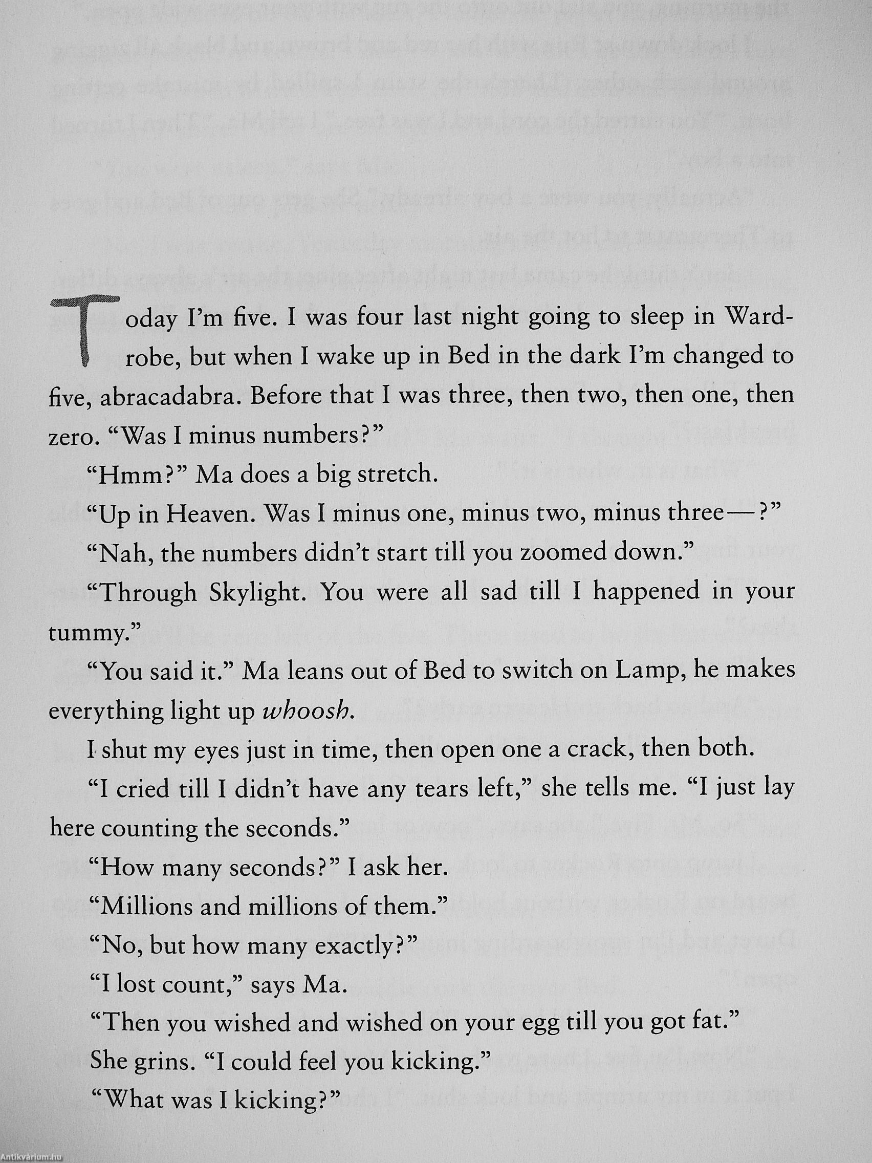 To five-year-old Jack, Room is the world. It's where he was born, it's where he and his Ma eat and sleep and play and learn. At night, Ma shuts him safely in the wardrobe, where Jack is meant to be asleep when Old Nick visits.