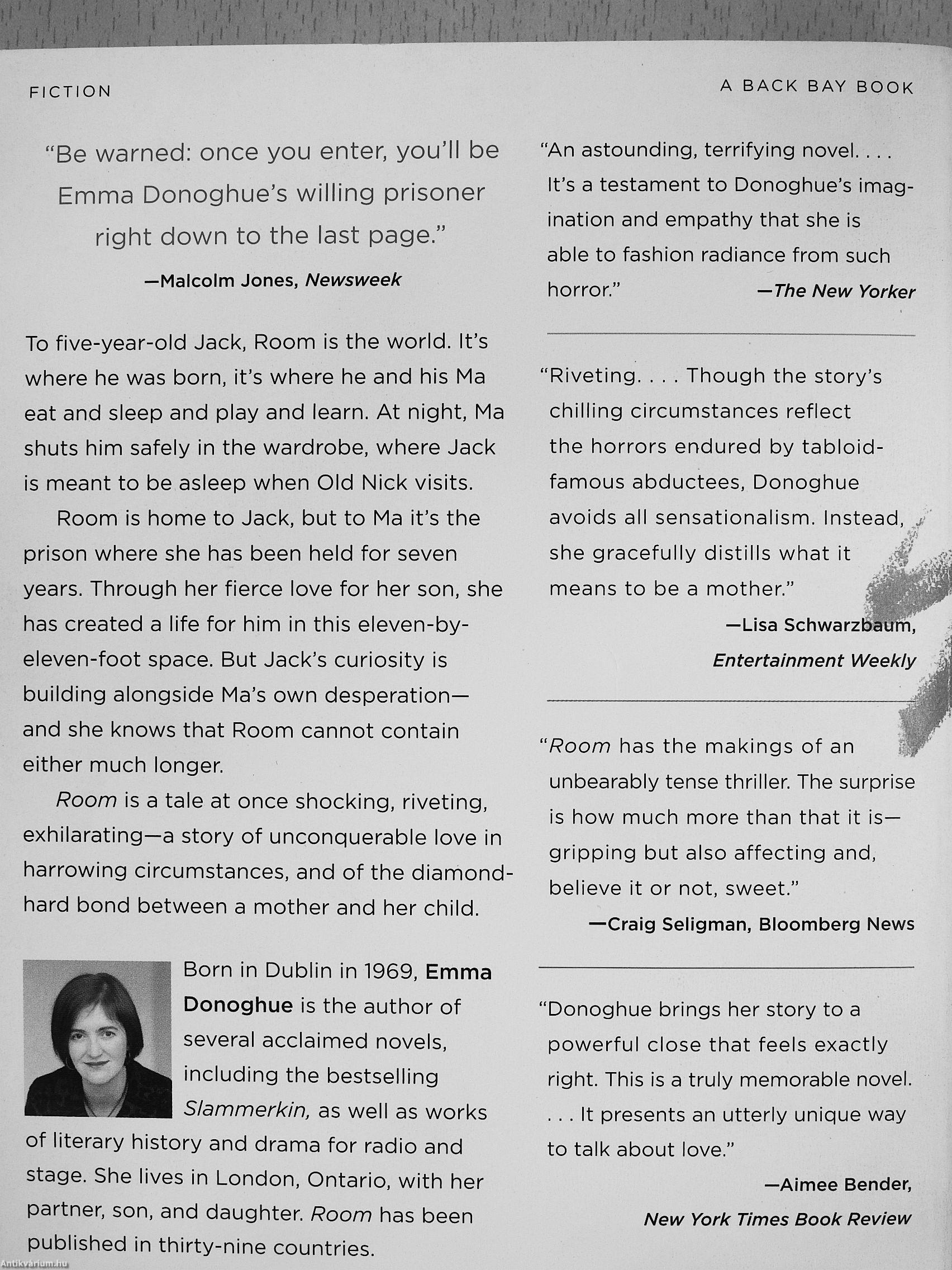 Room is a tale at once shocking, riveting, exhilarating—a story of unconquerable love in harrowing circumstances, and of the diamond-hard bond between a mother and her child.
