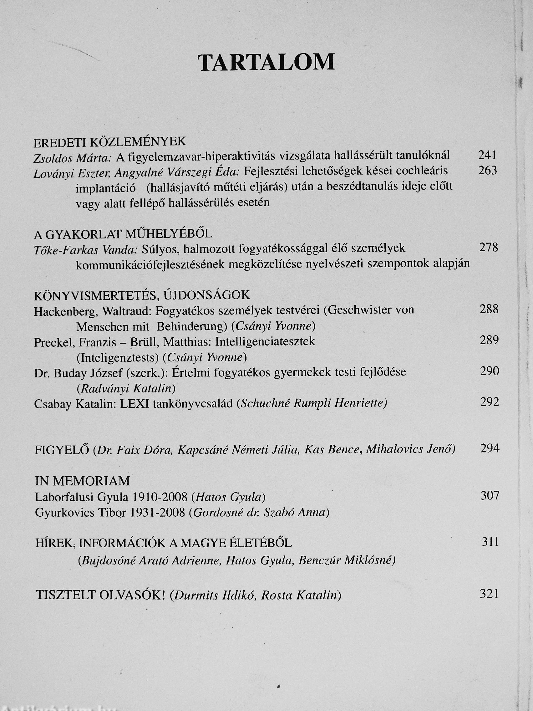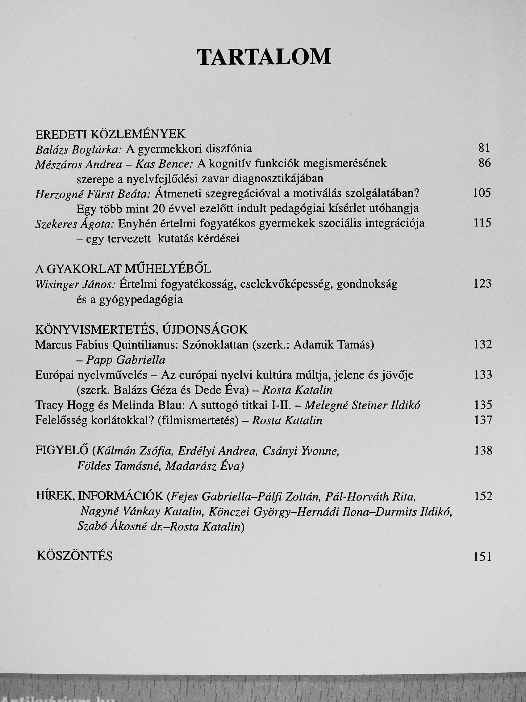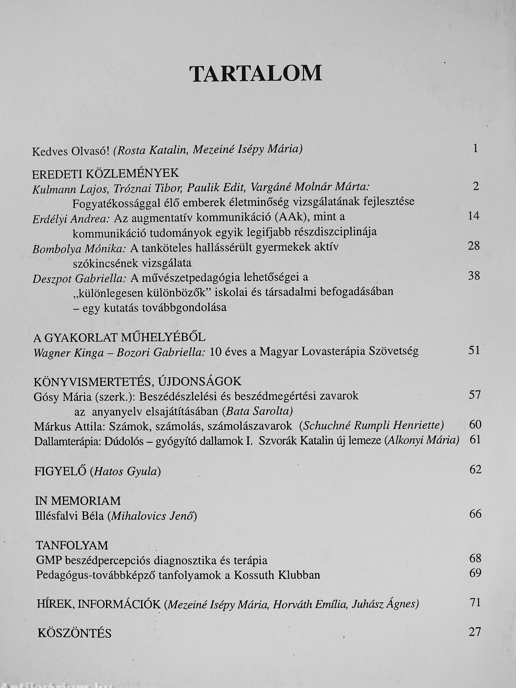 A Magyar Gyógypedagógusok Egyesületének Folyóirata - XXXVI. évfolyam 1-4. szám