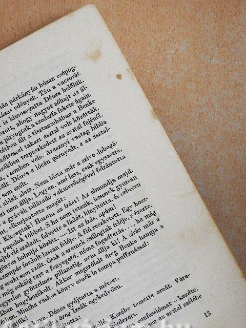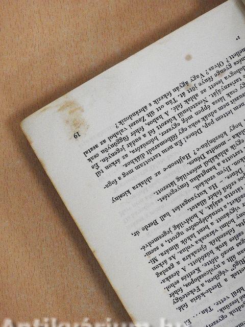 A védőborító elszíneződött, szakadozott. A lapélek és néhány lap foltos. Az előzéklapon tulajdonosi bejegyzés látható.