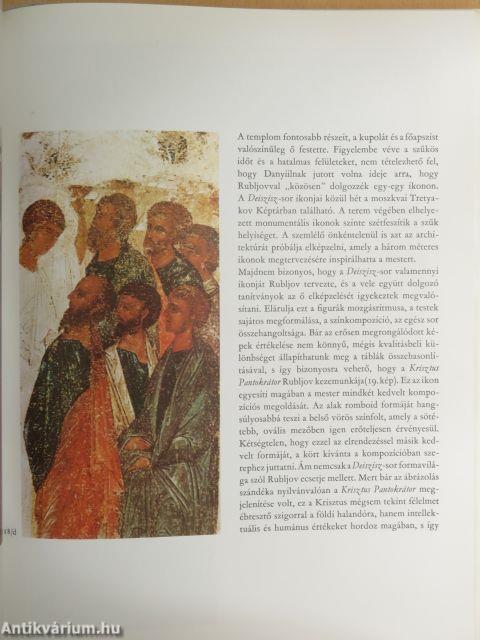 Az olvasó hiteles képet kap az egykori orosz kolostorok életéről, művészi tevékenységéről, arról a társadalmi és kulturális közösségről, amilyenben Andrej Rubljov is élt. Összevetheti e korszak - a XIV-XV. század - orosz és nyugat-európai művészetét, illetve párhuzamot vonhat Andrej Rubljov festőzsenije, valamint az itáliai trecento és quattrocento mestereinek csodálatos művészete között. A Rubljov-album képanyagát a szerzők helyszínen készült felvételeiből állítottuk össze. A 122 darab - kizárólag színes - reprodukció az alkotásokhoz méltó színvonalon tolmácsolja a nagy orosz ikonfestő művészetét.
