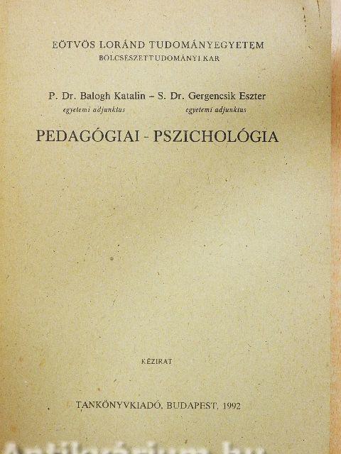 | A pedagógiai pszichológia tárgya, módszerei, a tudomány rendszere, törvényszerűségei (S. Dr. Gergencsik Eszter) | |