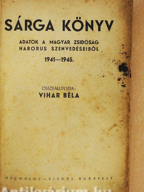 A magyarországi zsidóság katasztrofális esztendeiről mutat be egy-egy részletet e könyv. Hiteles jegyzőkönyveket közlünk, amelyek - az életbenmaradottakat is tekintetbe véve - közel egy milliónyi lélek tragédiáját vázolják.