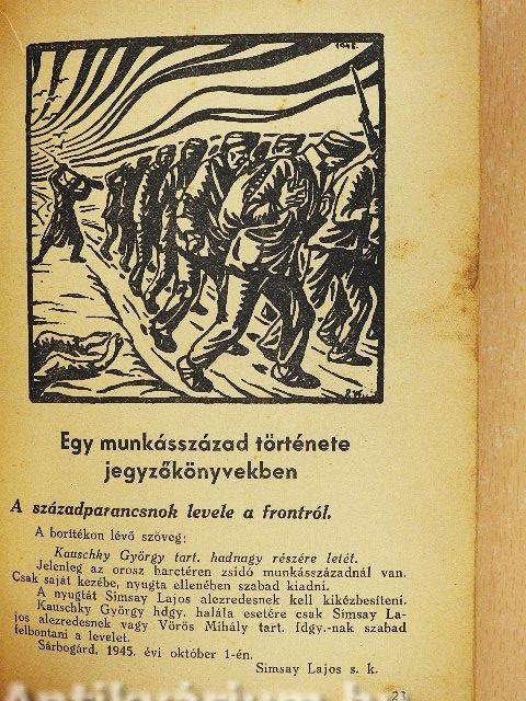 Mégis, van egy másik célunk e munkával. Segítségért kiáltunk! A maradék hazatérők elpusztulnak kellő támogatás hiányában... Avagy mi vár reájuk itthon, kifosztott otthonaik küszöbén? Egy immorális gazdasági lehetőség csábítása és a még mindig parázsló antiszemitizmus izzása a lelkekben? Tervszerű elgondolás nélkül pedig aligha illeszkedhetnek be a termelő, építő munkába, holott ezt kívánja az ő érdekükön túl az ország érdeke is.