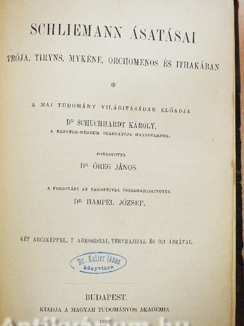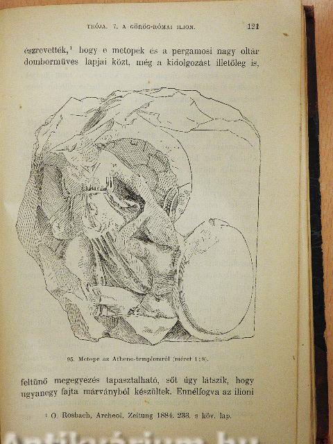 | Megjegyzés: | Két arczképpel, 7 abrosszal, tervrajzzal és 321 ábrával illusztrálva, kihajtható mellékletekkel. A mai tudomány világitásában előadja Dr. Schuchhardt Károly, a Kestner-Muzeum igazgatója Hannoverben. Nyomtatta Hornyánszky V., Budapest. |