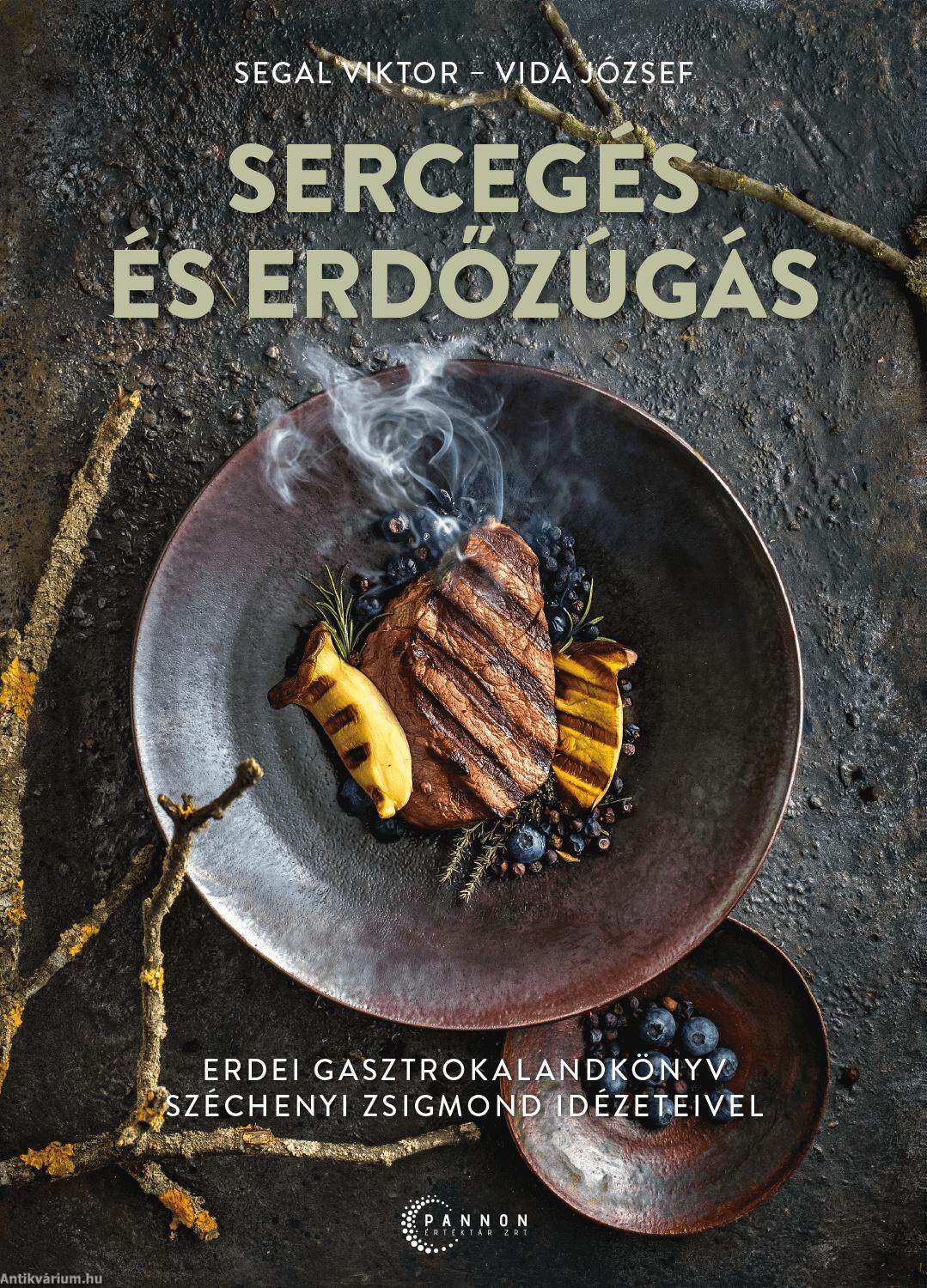 Ez a könyv egy erdei gasztrokalandot mesél el, egy olyan kalandot, aminek a végén ötvenöt érdekes és ízletes recepttel leszünk gazdagabbak. Ezt az erdei kalandot először receptbe, majd lábasba, fazékba, serpenyőbe öntöttük és azokat egyenként, sercegve, kisütve, megfőzve, keverve, feltálalva az Olvasó kezébe adjuk, s hozzá alapként vagy - ha úgy tetszik - köretként Széchenyi Zsigmond nagyszerű írásaiból idézünk. Ám könyvünk nem csak vadászembereknek szól, így, aki csak annak tartja magát, az akár bele se kezdjen, nehogy csalódottan kelljen letennie. Széchenyi nyomában járva összegyűjtöttük a magyar erdők kínálta alapanyagokat vadakból, vízi- és vadszárnyasokból, gombákból, gyógyfüvekből, tavak s patakok halaiból, hogy azokat kiegészítsük a mezők és konyhakertek kincseivel, majd mindezeket kedvünkre megfőzve vagy megsütve közreadjuk. Magyarország vadászati nagyhatalom, vadhúsfogyasztás tekintetében mégis van honnan felzárkóznunk. A vadhús az állatok szabad mozgása és táplálkozása miatt alacsony zsírtartalmú, kifejezetten tápláló és magas biológiai és élvezeti értékkel bír. A vadak húsa gazdag ízadó kivonatanyagokban - ettől érezzük a vadhúsfélék jellemző, karakteres, ínycsiklandó zamatát és illatát - s ezt, ízlés szerint hangsúlyoztuk, vagy éppen tompítottuk a megfelelő recept elkészítésekor. A természetes környezetéből származó egészséges táplálék, az alapanyagot adó vadak, gombák, gyümölcsök, fűszerek ökológiai lábnyoma sokkal alacsonyabb a hagyományos gazdálkodásból származó élelmiszereknél, beszerzése gyakorlatilag csak a vadászatból, begyűjtésből és a feldolgozásból áll. A vadhús garantáltan mentes antibiotikumoktól, ipari tápszerek nyomelemeitől vagy hormonszármazékoktól. A vadhúsok kalóriatartalma fele, negyede a legnépszerűbb házi húsokénak, a sovány halhússal megegyező szinten van. Hiszünk abban, hogy a könyvbe kötött erdei kalandunk végén kedvet csinálunk a vadfőzéshez, vadsütéshez, kedvet az erdőjáráshoz és - hogy a jutalom teljes legyen - legkedvesebb desszertjeink, süteményeink, édességeink receptjét is közreadjuk. Széchenyi Zsigmond Ahogy elkezdődött... című könyvének ikonikus mondata annyira találó, hogy azóta is idézik az erdőjárók, természetkedvelők, vadászok: "A Vadászat": vadűzés és erdőzúgás, de több Erdőzúgás. Így lett nekünk az erdei gasztrokalandunk sok sercegés és erdőzúgás. Ám a főzés és a sütés természeténél fogva: több Sercegés.