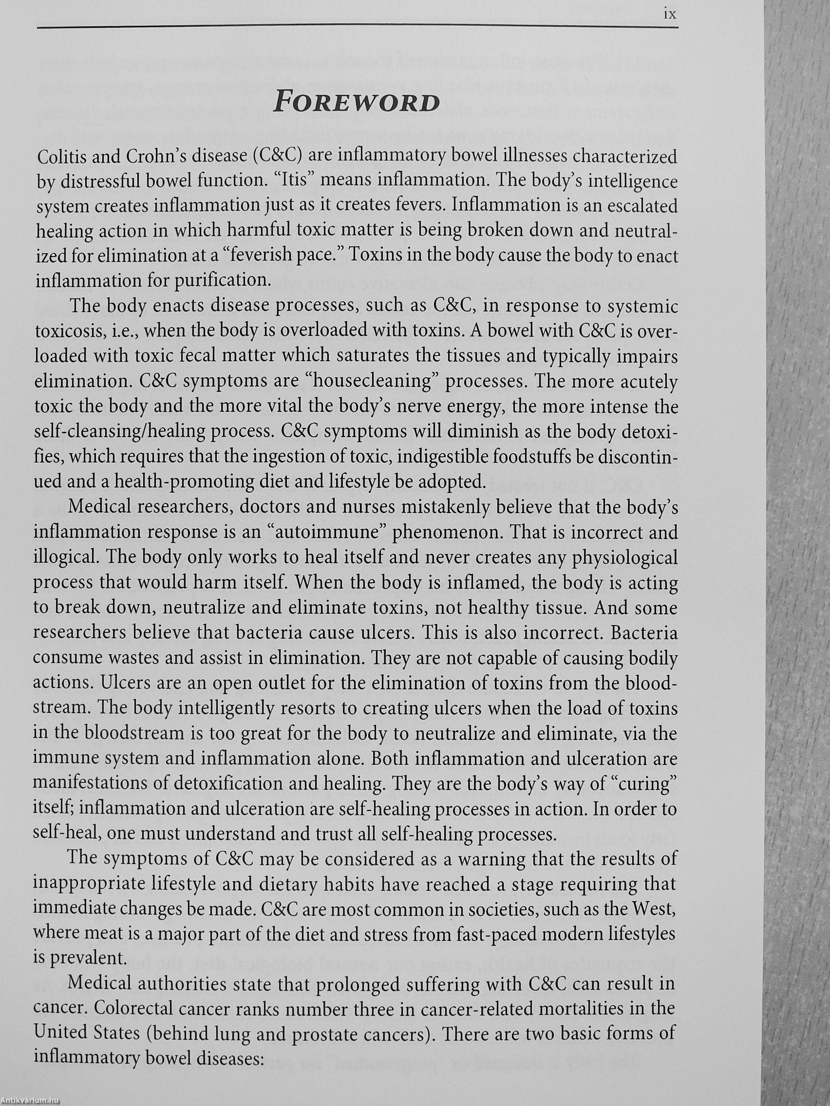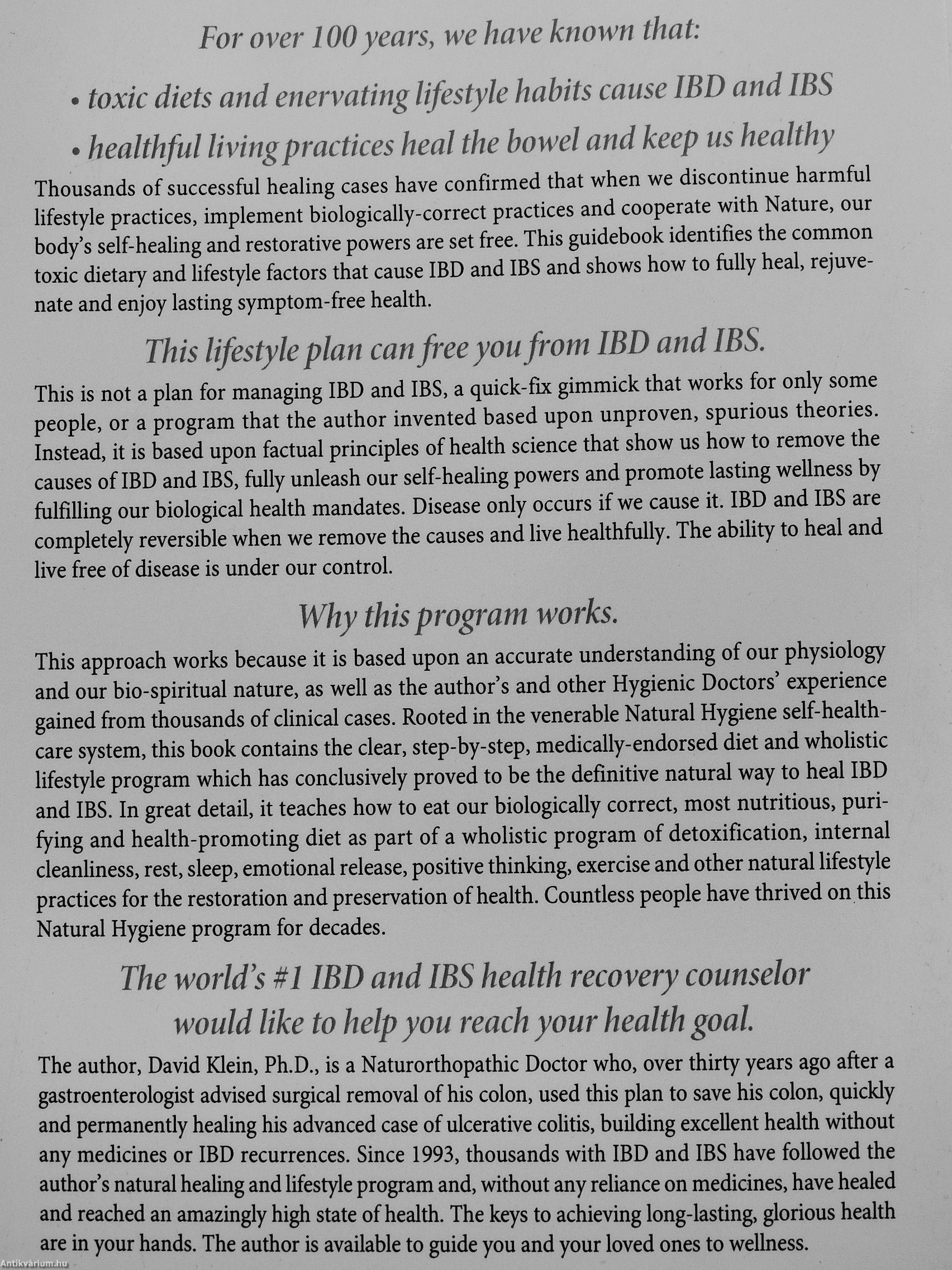 This is not a plan for managing IBD and IBS, a quick-fix gimmick that works for only some people, or a program that the author invented based upon unproven, spurious theories. Instead, it is based upon factual principles of heahh science that show us how to remove the causes of IBD and IBS, fully unleash our self-healing powers and promote lasting wellness by fulfilling our biological health mandates. Disease only occurs if we cause it. IBD and IBS are completely reversible when we remove the causes and live healthfully. The ability to heal and live free of disease is under our control.