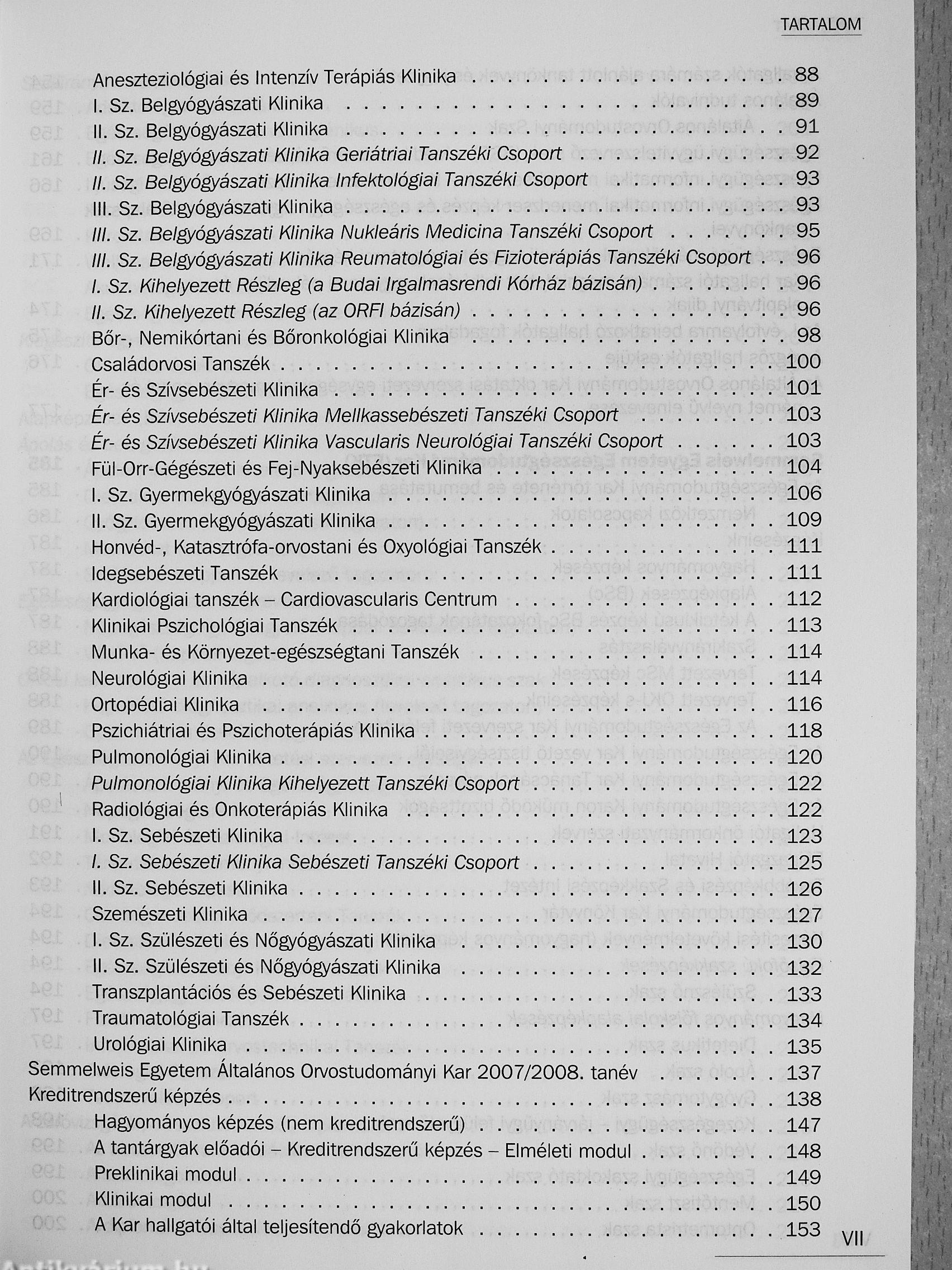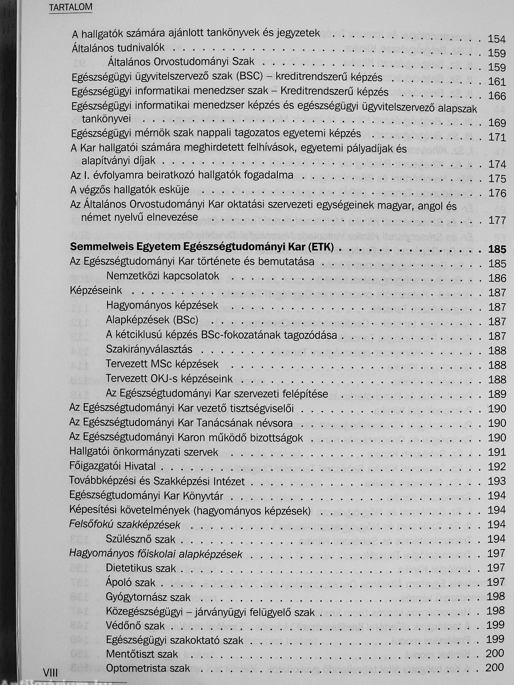 Semmelweis Egyetem Tanévkönyv 2007/2008
