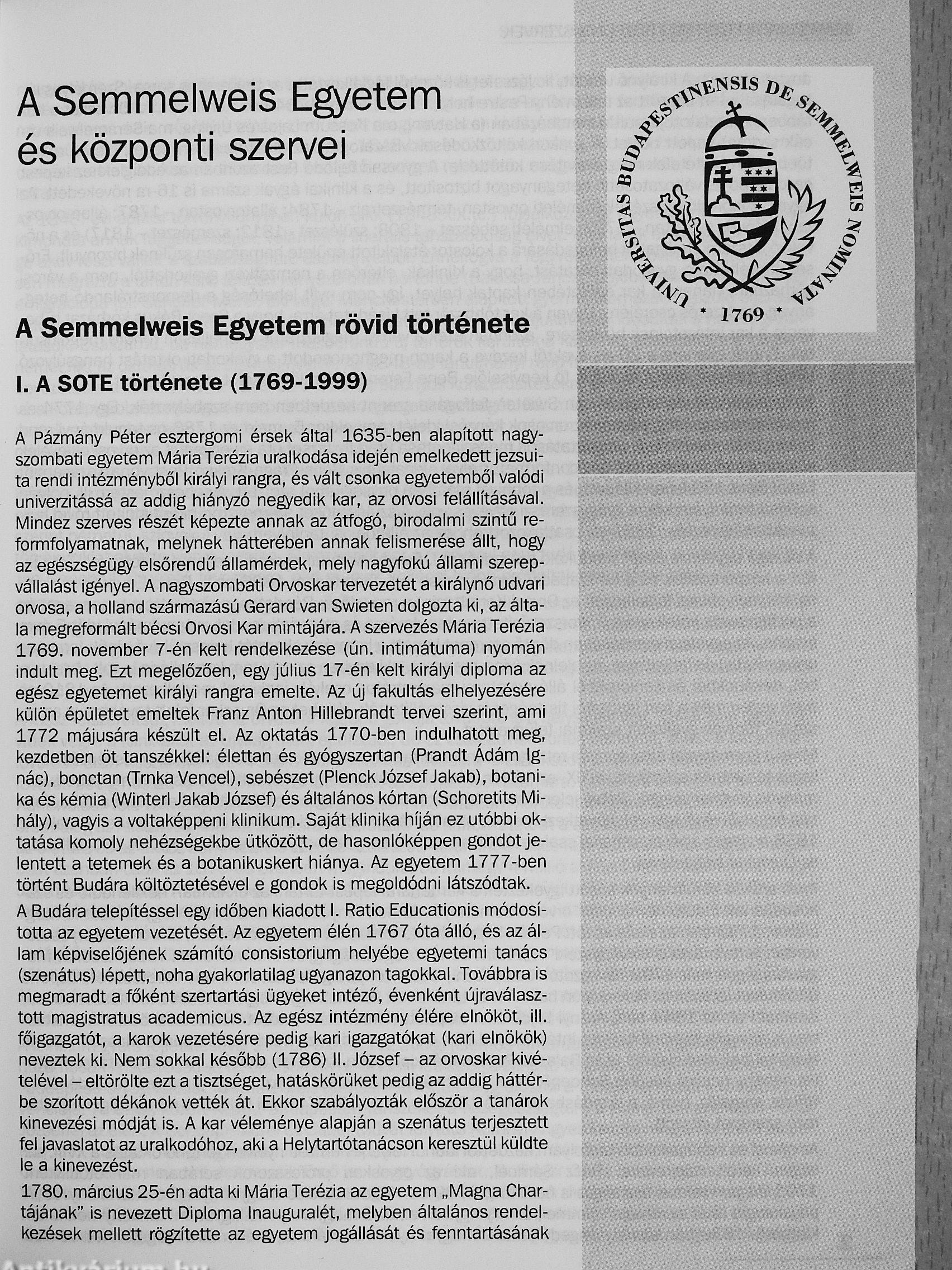 Semmelweis Egyetem Tanévkönyv 2007/2008 Semmelweis Egyetem Tanévkönyv 2007/2008