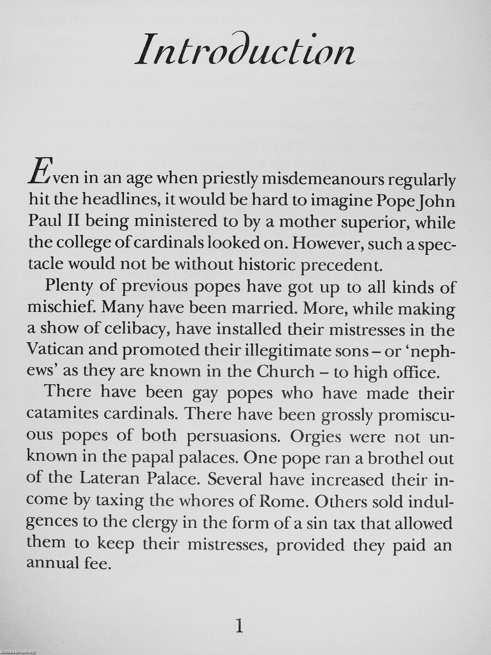 For centuries the popes have set the sexual agenda for almost a quarter of the world's population. But while preaching chastity from on high many have practised something altogether more dissolute. This irreverent exposé of the Bishops of Rome casts a