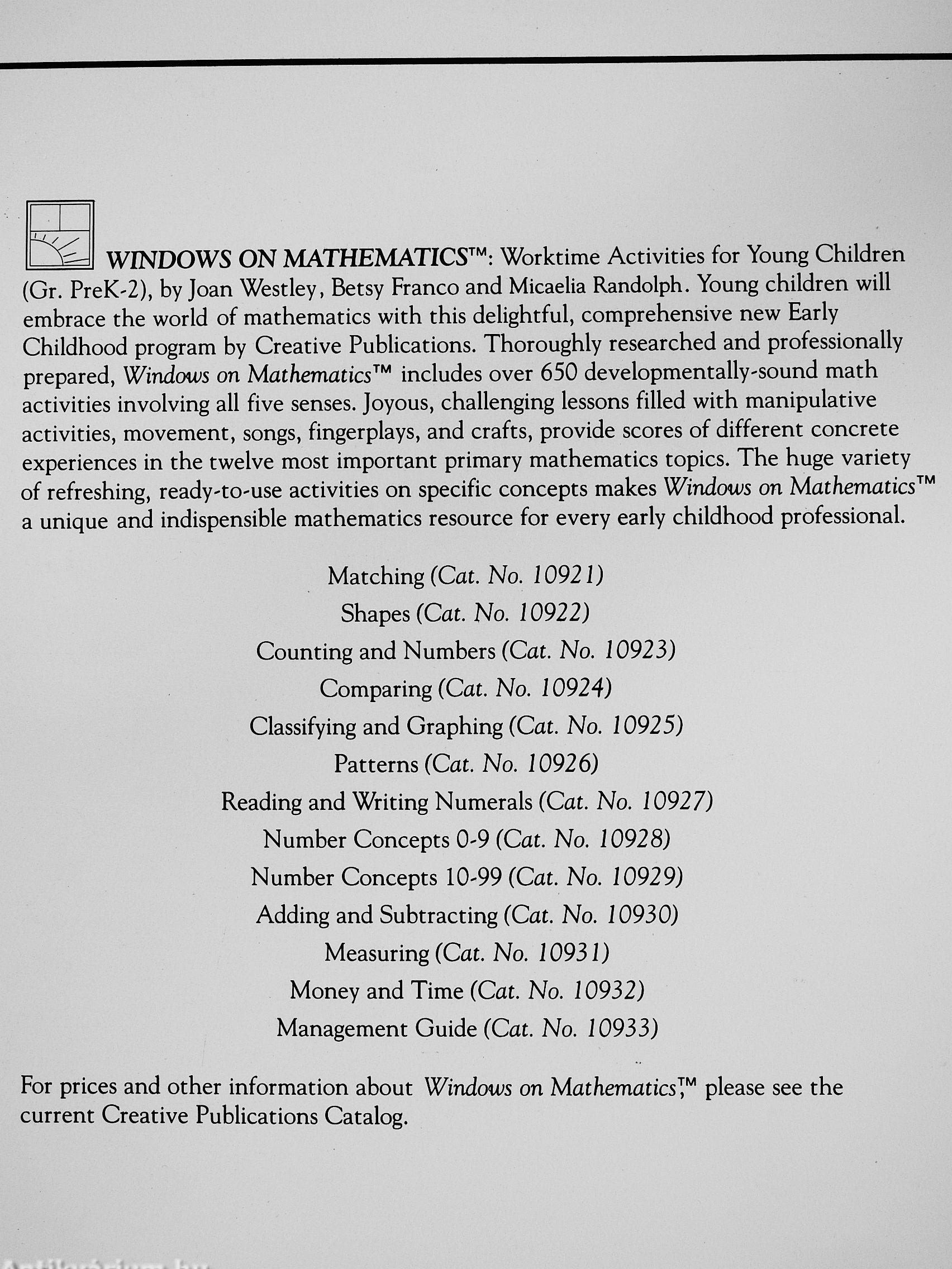 | Sorozatcím: | Windows on Mathematics-Worktime Activities for Young Children |