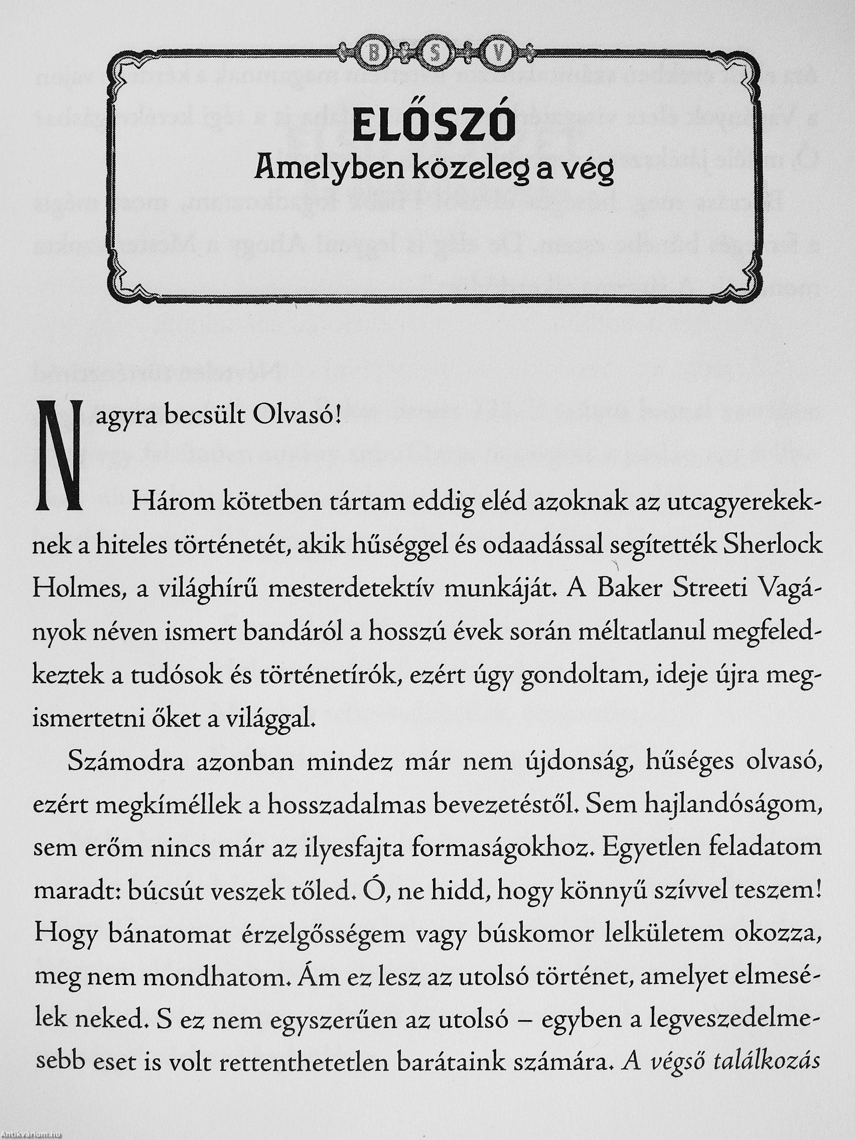 Ügy tűnik, elég nagy slamasztiká-ban van a Mester - jegyezte meg Wiggins. Gesztenyebarna szemében aggodalom csillant. Régóta dolgozott már a csapattal Sherlock Holmesnak, de azt sosem gondolta volna, hogy egyszer eljön az idő, amikor magát a nagy nyomozót kell megvédeniük.