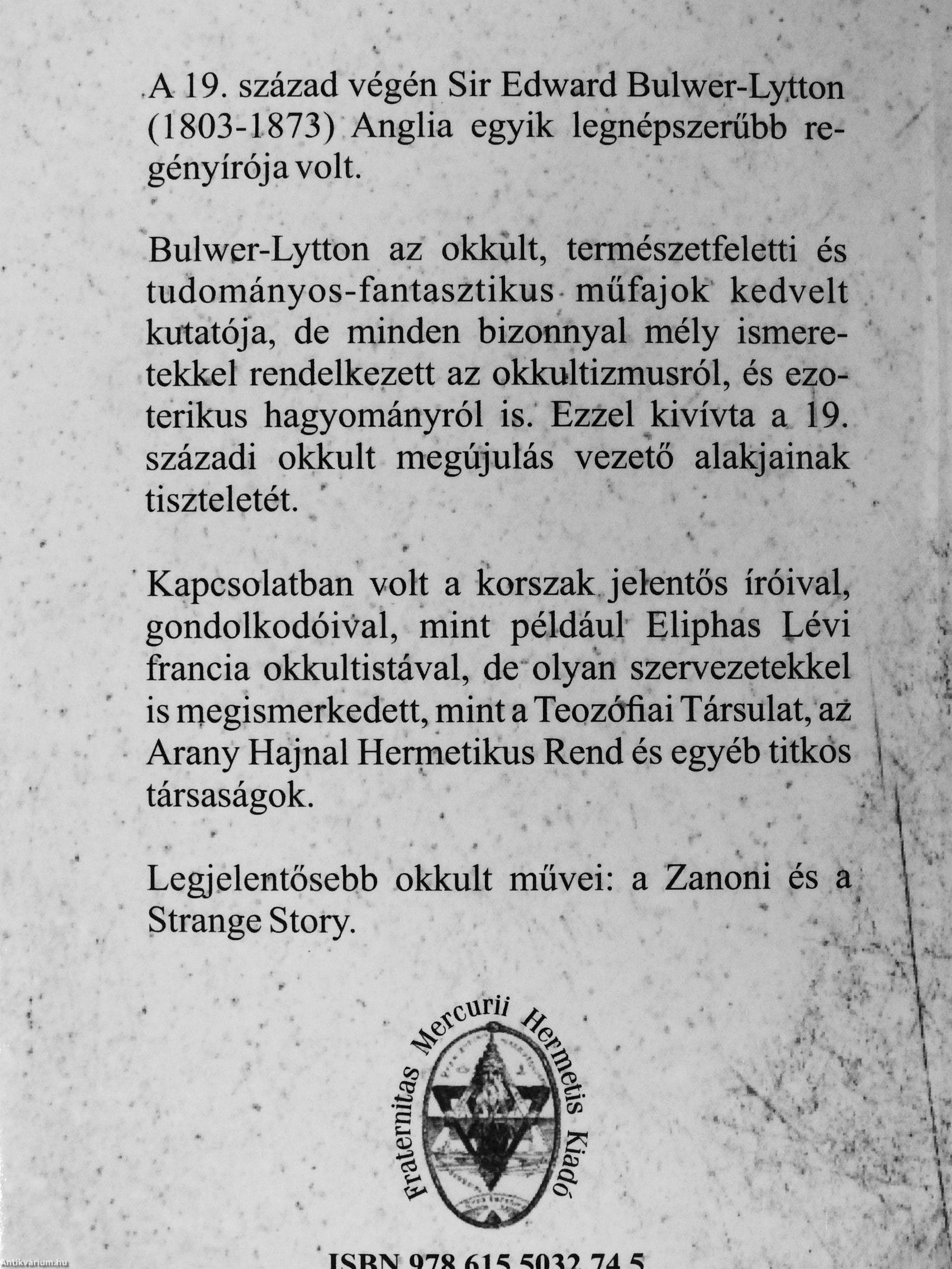 Bulwer-Lytton az okkult, természetfeletti és tudományos-fantasztikus műfajok kedvelt kutatója, de minden bizonnyal mély ismeretekkel rendelkezett az okkultizmusról, és ezoterikus hagyományról is. Ezzel kivívta a 19. századi okkult megújulás vezető alakjainak tiszteletét. '