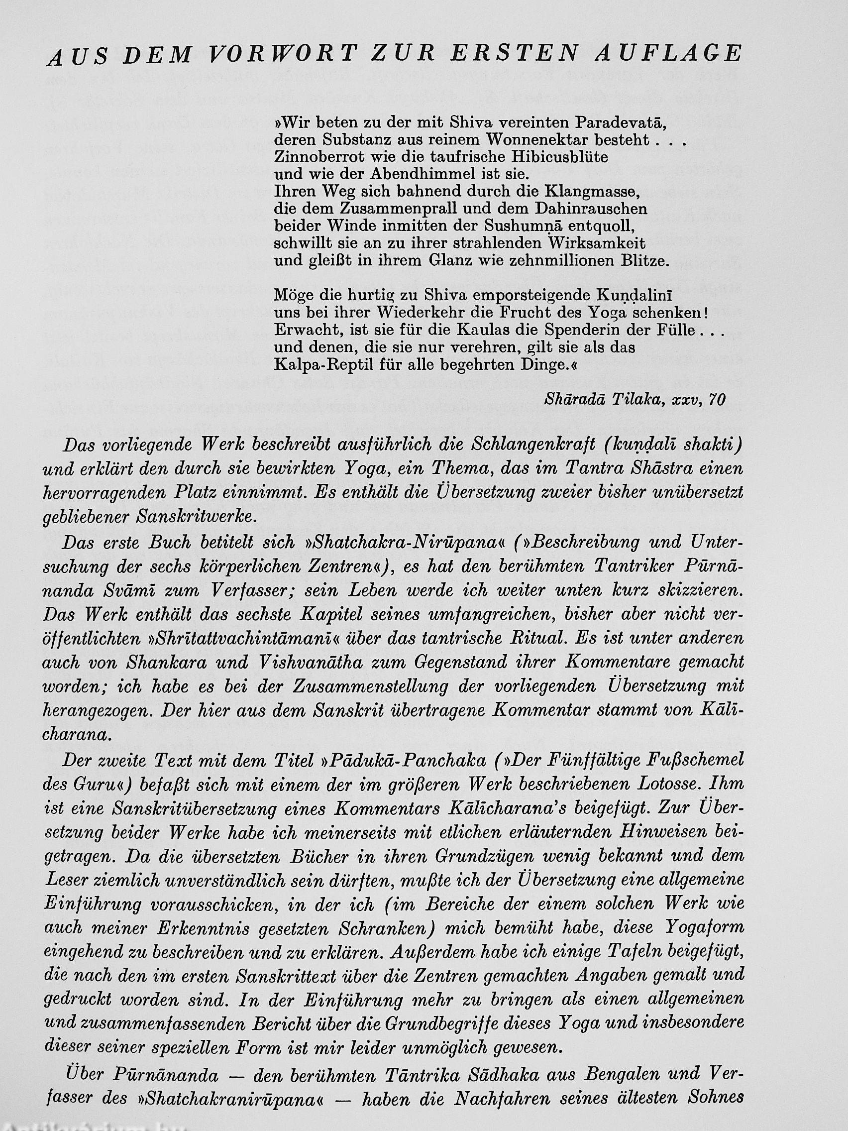 «Die Schätze der Hindu-Überlieferung wurden uns durch das gewaltige Lebenswerk von Arthur Avalon erschlossen, einem bahnbrechenden und klassischen Autor, der in seiner Art unerreicht ist.» Heinrich Zimmer