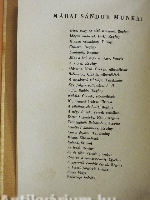 | Sorozatcím: | Márai Sándor munkái |