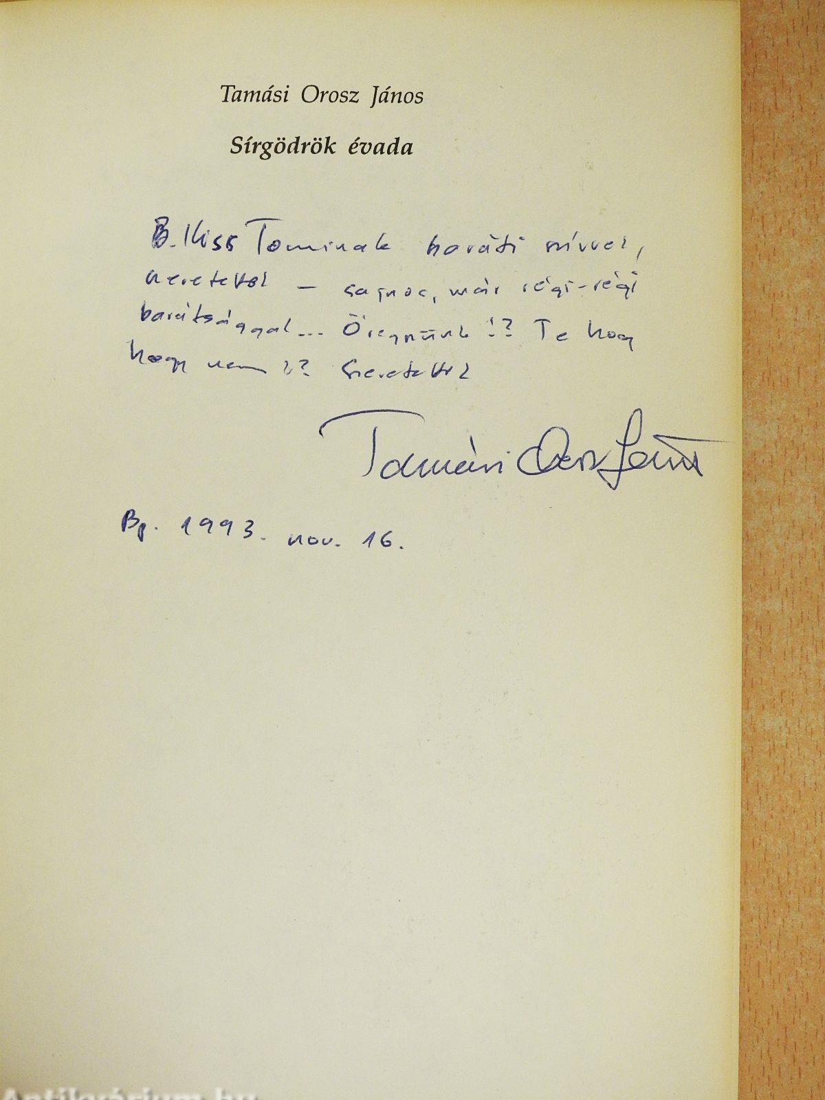 | Megjegyzés: | Tamási Orosz János szerző által dedikált példány. Fekete-fehér illusztrációkkal. |