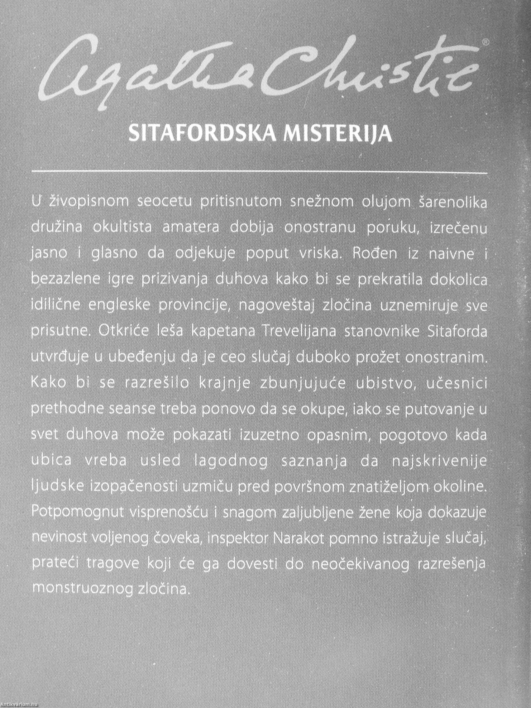 U ?ivopisnom seocetu pritisnutom sneinom olujom áarenolika dru^ina okultista amatera dobija onostranu poruku, izreíenu jasno i glasno da odjekuje poput, vriska. Roden iz naivne i. bezazlene ígre prizivanja duhova kako bi se prekratila dokolica idilidne engleske provincije, nagove^taj zlocina uznemiruje sve: prisutne. Otkriée lesa kapetana Trevelijana stanovnike Sitaforda ¦ utvrduje u ubedenju da je ceo sluíaj'duboko prozet onostranim. Kako bi se razre§ilo krajnje zbunjujuce ubistvo, ucesnici prethodne seanse treba ponovo da se okupe, iakO' se putovanje u svet duhova moie pokazati izuzetno opasnim, pogotovo kada ubica vreba usled lagodnog saznanja'da najskrivenije ljudske izopacenosti uzmiíu pred povrsnom znatizeljom okoline. Potpomognut visprenoSéu i snagom zaljubljene zene koja dokazuje nevinost voljenog ?oveka, inspektor Narakot pomnp istraáuje slucaj, prateéi tragove koji ée ga dovesti do neoíekivanog razresenja. monstruoznog zloíina.
